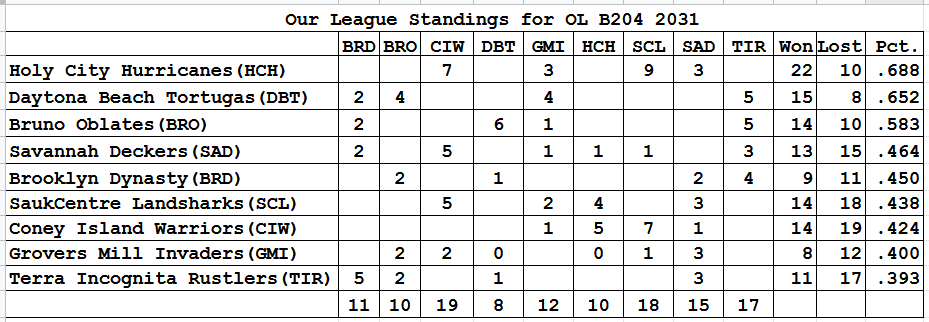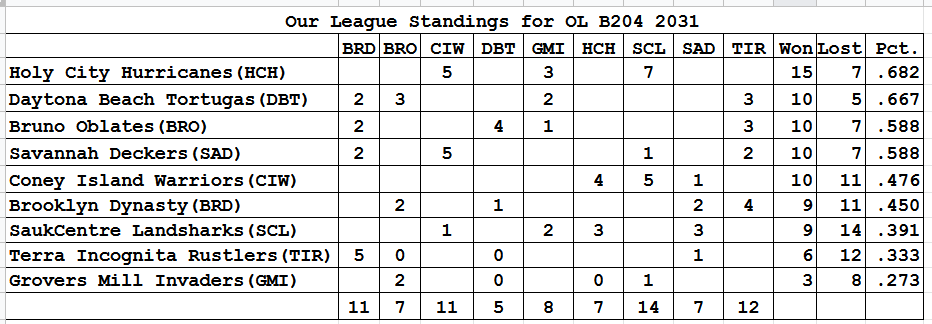 Claptown moves into a tie with New York for the top spot. Bushwood and Waffletown playing the long game as they wait for their first OL action (later this month). Both will have exactly 10 OL games, so hoping to make the most of a limited schedule. Last edited by stl jason; 07-13-2022 at 08:00 AM. |