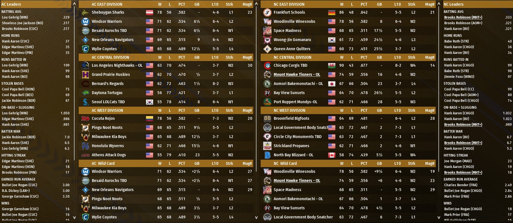 The Tinners play 4 more (1+3) against Aomori, and a 4-game series against Port Ruppert, so will need to be swept by both... Just like they were towards the end of last season, so, far from out of the question! The Mundys play another 3 against Aomori, but that leaves them just short of being able to overcome LA and MH. Last edited by Tinkerman; 07-16-2022 at 05:13 AM. |