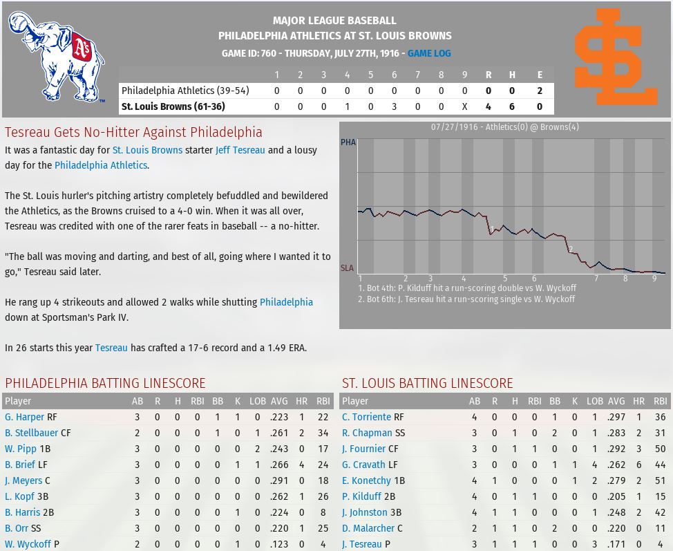 New Records No new records Accomplishments Jeff Tesreau (St Louis Browns) pitched the only No Hitter of the season 12 pitchers win 20 or more games. Sherry Magee (St Louis Cardinals) 2000th hit and 1000th run scores Honus Wagner (Cleveland Indians) 1500th RBI Ken Williams (New York Giants) 25 game hitting streak The Slam File 10 hit this seaqson Code: