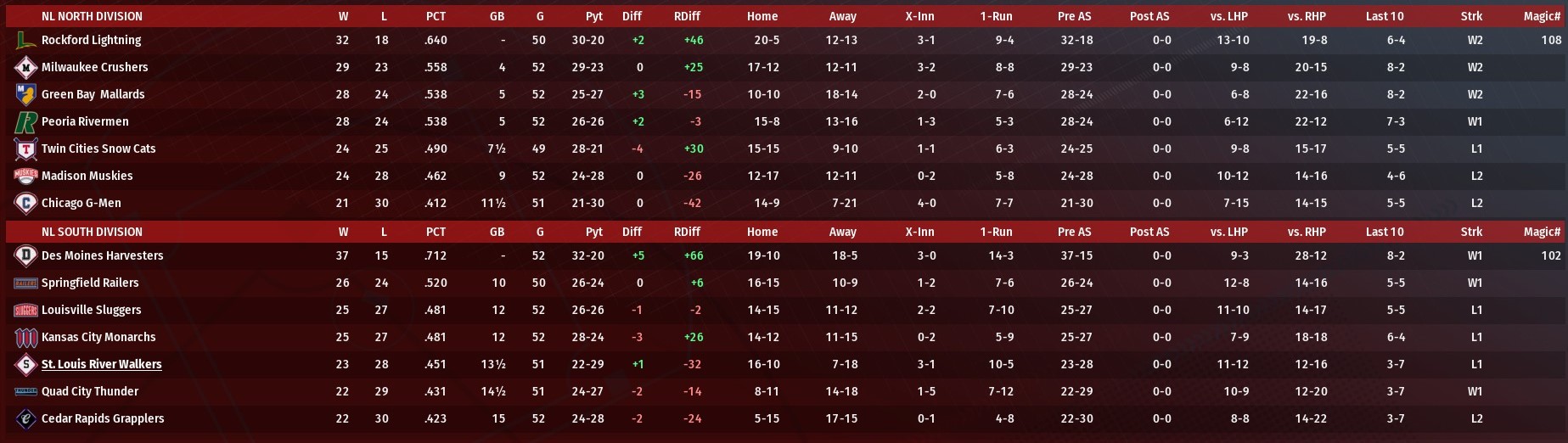 Record: 22-24, 3rd (Tied/w. Louisville), 11 GB Des Moines