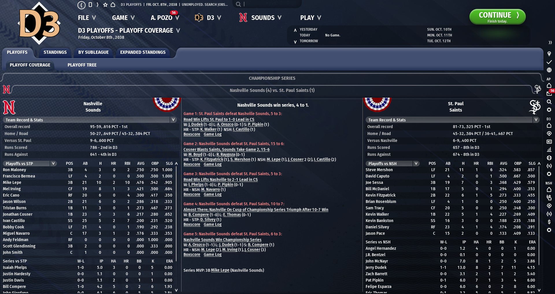 2038: Division 3 Championship Series, Nashville Sounds vs. St. Paul Saints