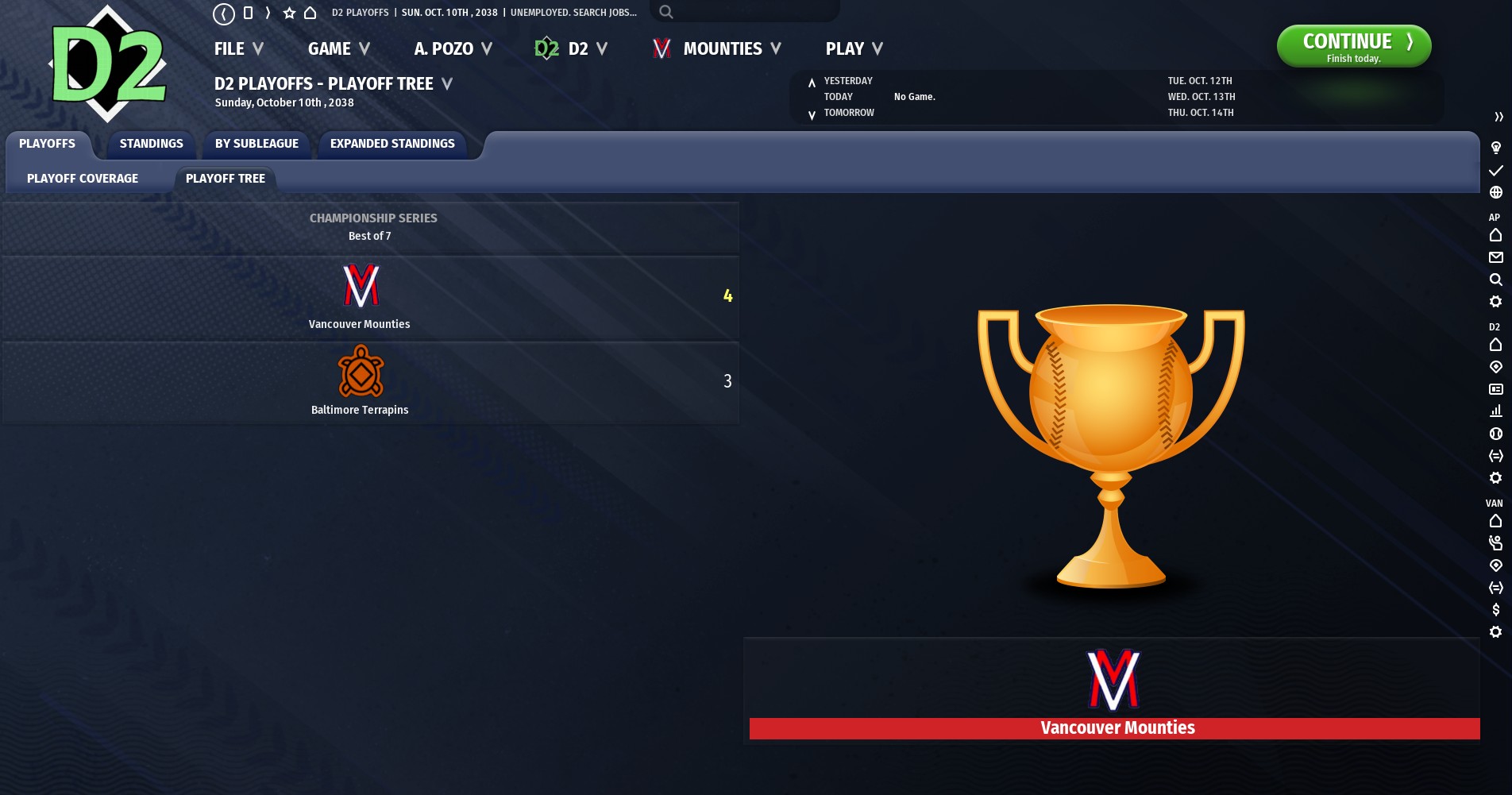 2038: Division 2 Championship Series, Vancouver Mounties vs. Baltimore Terrapins