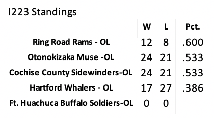 Left Coast came back from a 3 games to none deficit to defeat Sierra Vista to move on to the series. Game seven was a come from behind win. Trailing 4-2 going to the 8th after Mussina got the first out the LabRats strung together 4 consecutive hits on their way to taking a 5-4 lead and that's how it would end.
