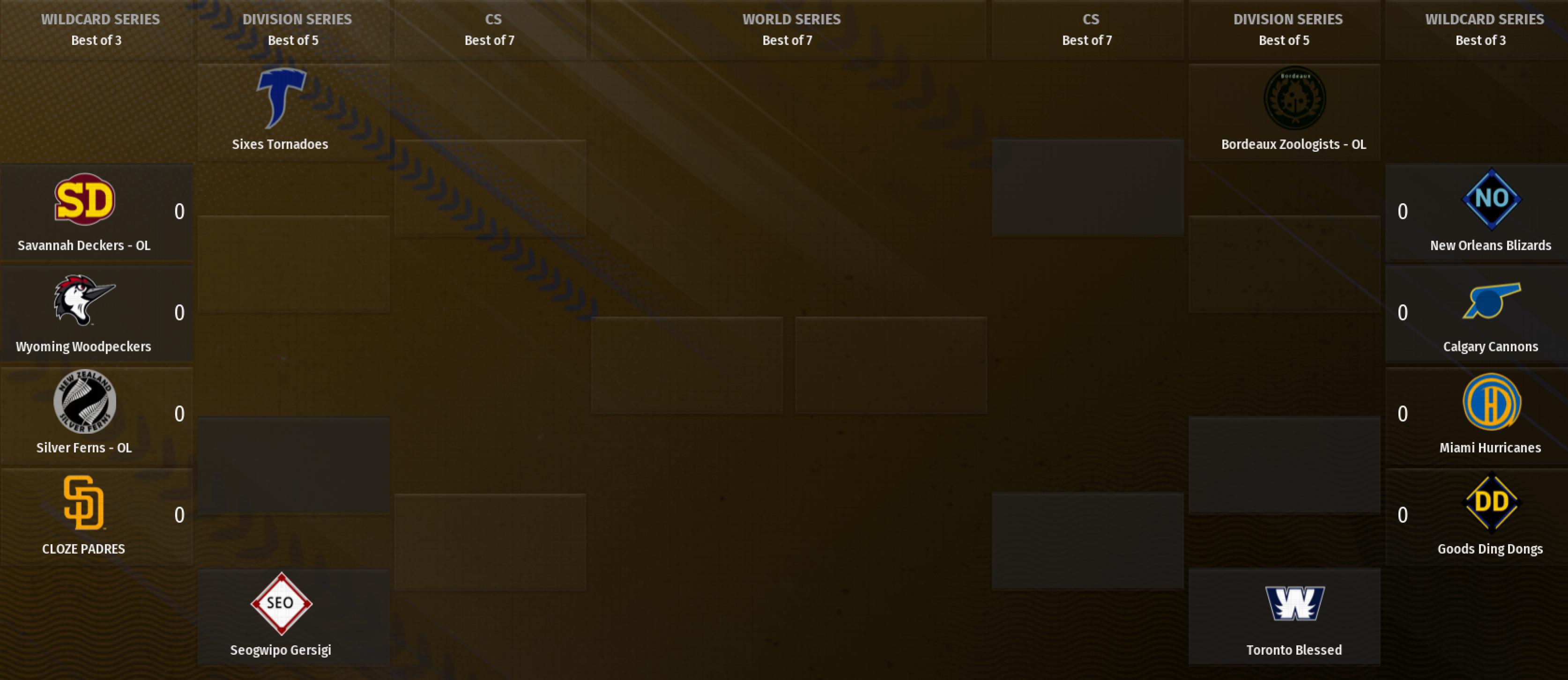 Aomori vs Port Ruppert in the LCS. Mount Hawke goes down in the LDS. OL guaranteed one team in the WS for a shot at Perfect tier. |