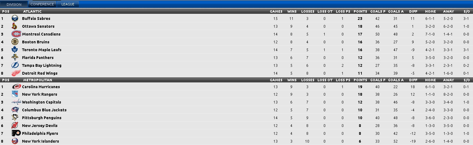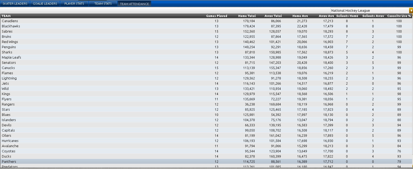 Found this interesting little tidbit... 79% sold seat capacity for my .500 Panthers. And I'm envious of the Buffalo Sabres attendance... vs. real life - it's just so wrong!
