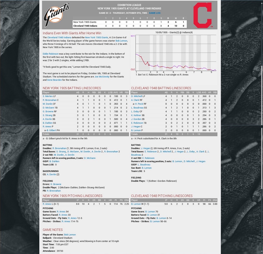 1905 New York Giants @ 1948 Cleveland Indians -- Game 4
