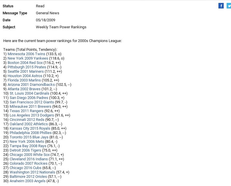 Rec/Std: 20-18, 2nd (T/w. Cincinnati), 3 GB Pittsburgh W: Marquis 4-2, 4.28. L: Glavine 1-2, 3.97. HR: Sanders 4, Renteria 5, Edmonds 9, Player of the game: Reggie Sanders was 2 for 3 with a home run, three runs scored and three RBIs. NOTE: For now, I am going to play all nine innings rather than letting the CPU handle the first five. Too many decisions I didn't like being made before I got control. If I lose, or more importantly my bullpen gets chewed up, I want it to be my decision. Last edited by rink23; 02-16-2018 at 04:05 AM. |