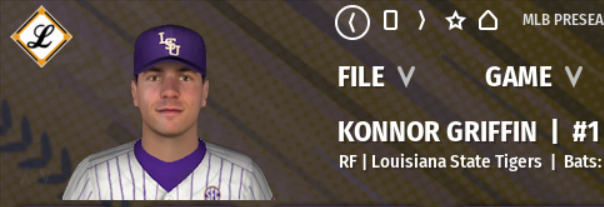 For the second time in the last six Drafts, Jackson Prep (Flowood, Miss.) features one of the most tooled-up prospects in the high school class. While Jerrion Ealy opted to pursue a football career, Griffin is a full-time baseball player and could be the first prepster drafted in July. He reclassified from the 2025 Draft to 2024 after leading Jackson Prep to a Midsouth Association of Independent Schools 6-A championship as a freshman, then contributed to the Patriots' sixth straight title last spring. Griffin has a big-league frame at 6-foot-4 and 205 pounds and he possesses five-tool potential. His size does add some length to his right-handed stroke and he has some timing issues he's ironing out at the plate, but he controls the strike zone well and makes regular contact. His combination of electric bat speed, strength and leverage could translate into 30-homer power as he learns to drive the ball in the air more consistently. Griffin also has well-above-average speed, giving him 30-30 upside. His quickness and instincts make him a possible Gold Glover in center field, where he covers plenty of ground with long strides. The Louisiana State commit also offers a strong arm that has been clocked up to 94 mph off the mound and scouts say his makeup is as impressive as his physical ability. -mlb.com Once he gets drafted and has an .fg file, I will probably convert the file to the proper naming convention but that's like a year away.