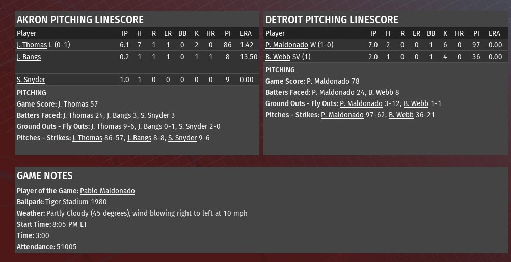 MBL news: Oct. 9 -- ALCS Game 1 -- Akron 6, Detroit 3