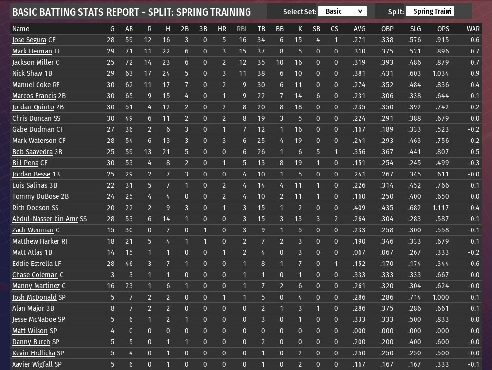 2036 prediction: 81-81, 3rd place NL South, 10 GB Cedar Rapids Manager/General Manager: Mike Renkes, 20th season, 1,708-1,371, .552 Pct., 8 playoff qualifiers; 5 World series qualifiers, World Series titles in 2018 and 2025. 2035 Award winners: NL MVP, NL Silver Slugger 1B and NL Gold Glove 1B Nick Shaw; NL Manager of the Year Mike Renkes. 2035 season summary: The River Walkers won their first four games of the season and went 9-1 over the first 10 to quickly move atop of the National League South Division. Outside of a few days late in June, the Walkers stood atop the division the rest of the way and never shared the lead again after July 7. St. Louis owned a 60-40 record and a 4-game lead over Quad City and Springfield at the All-Star break. The Walkers entered September with a 74-54 record and a three-lead lead over Cedar Rapids. Down the stretch, the advantage grew to as many as seven games with the team clinching the NL South Division title, their first since 2031, with a 6-2 win over Springfield on Sept. 30. After that, the Walkers dropped their final three games of the regular-season to finish 95-67. That was followed by a loss in six games to Rockford in National League championship series. Departures OF -- Nathaniel Dixon, 30 – 141 G, 63 GS, .224 BA, 15 HRs, 42 RBIs, .632 OPS; Unsigned free agent OF – Yan Dixon, 34 – 94 G, 44 GS, .236 BA, 3 HRs, 25 RBs, .584 OPS; Unsigned free agent LHP/SP – Shane Drogo, 31 – 33 GS, 16-8, 4.29 ERA, 188.2 IP, 160 Ks, 1.37 WHIP; Signed one-year contract with Rockford RHP/SP – Edward Kunselman, 33 -- 32 GS, 10-7, 3.94 ERA, 187.1 IP, 126 Ks, 1.21 WHIP; Signed-four year contract with Detroit RHP/CL – Nick Strother 32 – 48 G, 7-3, 30 Svs, 3 BS, 50.0 IP, 52 Ks, 1.24 WHIP; Signed three-year contract with Akron Newcomers SP – Ming Xiang, 25 – No stats available from Tawian; Free agent signed to three-year contract RHP/RP – Brett McVey 31 – 59 G, 3-3, 3.39 ERA, 0 Svs; 4 BS, 77.0 IP, 79 Ks, 1.39 WHIP; Signed to one-year contract RHP/RP Maximiliano Minelli, 24 – 44 G, 1 GS, 3-5, 2.70 ERA 8 Svs, 0 BS, 83.0 IP, 94 Ks, 1.39 WHIP (Class AA and High-A); Signed as minor-league free agent from Dayton. RHP/RP Mike Fagan, 34 – 68 G, 9-5, 3.82 ERA, 9 Svs, 4 BS, 63.2 IP, 59 Ks, 1.51 WHIP; Signed as a free agent from Cleveland (currently injured) IF – Jordan Quinto, 33 --- B-L, T-R – 89 G, 71 GS, .286 BA, 6 HRs, 30 RBIs, .833 OPS; Signed as free agent from Quad City OF – Bill Pena, 34 -- B-S, T-R – 106 G, 60 GS, .205 BA, 9 HRs, 28 RBIs, .711 OPS; Signed as free agent from Detroit Starting rotation RHP -- Josh McDonald, 30 – 32 Gs, 14-7, 3.49 ERA, 191.0 IP, 163 Ks, 1.30 WHIP Established himself as the staff ace by the end of the season. Finished second in the National League Cy Young award voting. RHP – Xavier Wigfall, 28 – 31 GS, 13-10, 3.45 ERA, 185 IP, 173 Ks, 1.28 WHIP In his first full season as a starter, Wigfall proved he can be a top-notch major league pitcher and could someday top a rotation. RHP – Ming Xiang, 25 – No stats available from Tawian; Free agent signed to three-year Making the move to the MBL from Taiwan, especially because of his age, Xiang was one of the top free agents in the class of 2037. Not much is known of him stat-wise, but from a scouting perspective Xiang has the potential to be a No. 1 starter. RHP – Jesse McNaboe, 28 – 8 Gs, 3-3, 2.59 ERA, 48.2 IP, 42 Ks, 1.15 WHIP After going a combined 70-39 over the previous five seasons, McNaboe was limited to eight starts in 2036. A season which ended for him on May 15 due to a partially torn UCL in his throwing arm. McNaboe had a decent spring training, going 1-2 with a 3.54 ERA in five starts, but there are concerns with his stamina moving forward. RHP – Kevin Hrdlicka, 25 – 23 GS, 6-5, 4.23 ERA, 125.2 IP, 130 Ks, 1.38 WHIP For the past few seasons, Hrldicka ranked among the top starters in all the minor leagues. After McNaboe’s injury, he took a spot in the Walkers’ rotation and fared well enough to earn a chance to start in 2037. He performed especially well in September when he was named the National League Rookie of the Month and Pitcher of the Month. Relief pitchers CL/RHP – Bobby Westerman 28 – 50 G, 1-3, 3.23 ERA, 4 Svs., 2 BS, 64 IP, 89 Ks, 0.98 After spending the 2036 season as the set-up man for closer Nick Strother, Westerman will take over that role this season. Westerman seemed to yearn to be the ninth-inning guy, and maybe that affected his performance. Hopefully, he will run with it now that it is his. RHP – Scott Rissler, 31 – 76 G, 7-5. 4.76 ERA, 1 Sv, 2 BS, 73.2 IP, 95 Ks, 1.24 WHIP The 2036 campaign wasn’t the best of Rissler’s four seasons with the River Walkers. But due to his ability to pitch often, 70 games or more in three of his past four seasons, St. Louis decided not to let him leave in free agency. RHP – Brett McVey 31 – 59 G, 3-3, 3.39 ERA, 0 Svs; 4 BS, 77.0 IP, 79 Ks, 1.39 WHIP Coming in from Milwaukee, McVey is the kind of pitcher the Walkers like. He excels at inducing ground balls and is a good presence in the clubhouse. RHP/RP Maximiliano Minelli, 24 – 44 G, 1 GS, 3-5, 2.70 ERA 8 Svs, 0 BS, 83.0 IP, 94 Ks, The 24-year-old has never pitched above AA, but his stuff is considered exceptional. He also is a ground ball pitcher, something the Walkers like in their pitchers. LHP – Greg Sones, 28 – 58 G, 3-5, 2.01 ERA, 4 Svs., 5 BS, 58.1 IP, 62 Ks, 0.98 WHIP A strong 2036 campaign has Sones now being mentioned as one of the game’s top left-handed relievers. Sones finished third in the voting for NL Top Reliever. LHP – Nick Ruffalo, 29 – 60 G, 1-2, 2.79 ERA, 3 Svs; 4 BS, 58.0 IP. 67 Ks, 1.21 WHIP Ruffalo turned in yet another solid season and remains one of the top left-handed relievers in the National League. LHP – Armando Cintron, 34 – 45 G, 4-0, 3.65 ERA, 1 Sv, 4 BS, 44.1 IP, 61 Ks, 1.13 WHIP Cintron has been one of the better left-handed relievers around for the past nine seasons