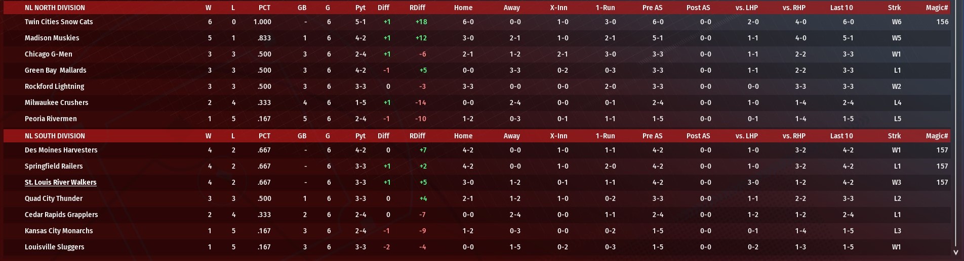 2036 season: 95-67, 1st place NL South, 6 GA Cedar Rapids; Lost 4-2 to Rockford in NLCS