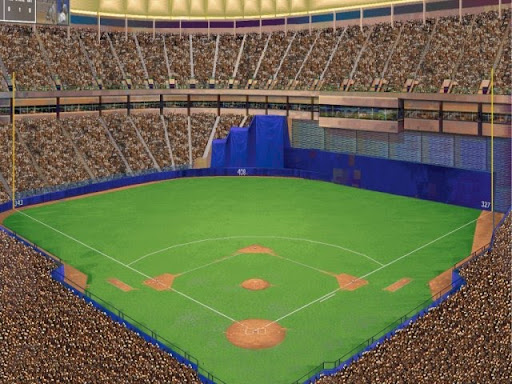 This is fantastic work. The pictures are a very accurate depiction of the real stadium right down to each company's advertising sign and the daytime shadowing on the field. The only place where the artist has taken some license is to adjust the location of some of the buildings depicted in the skyline. Thanks so much!
