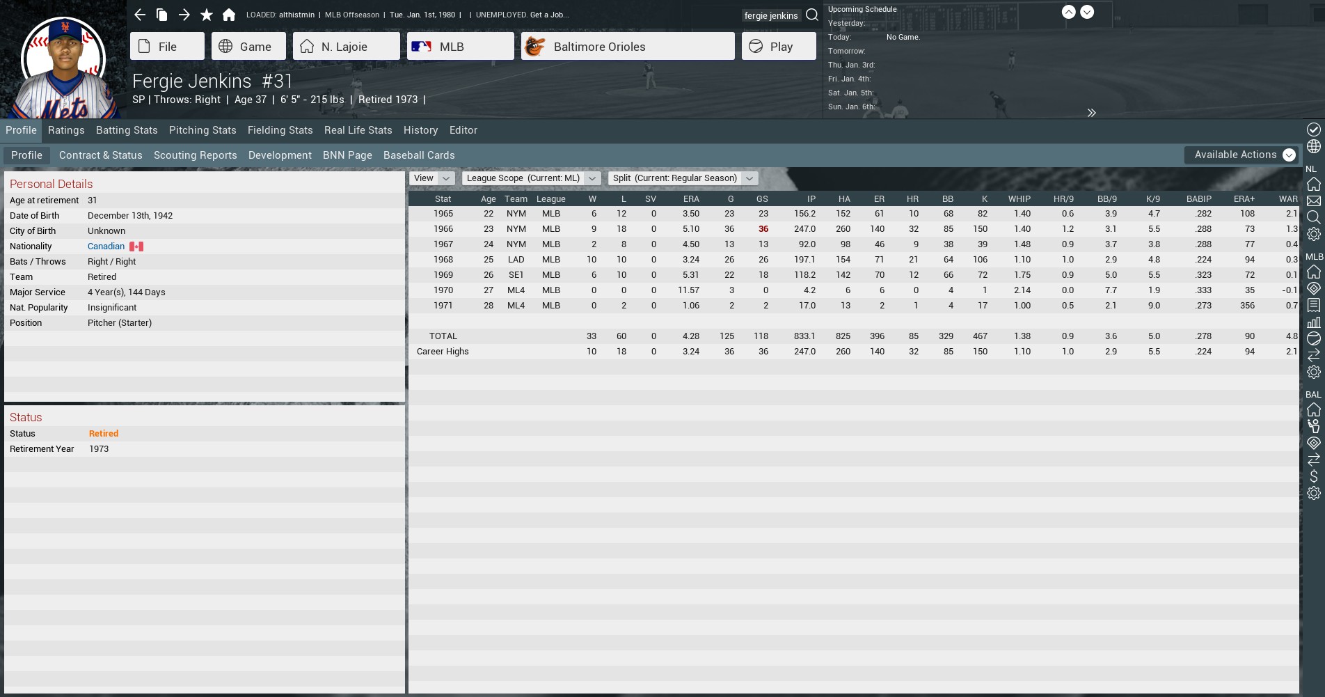 I've simmed from 1920 to 1980 so far (going to go to 2016) and the first thing I've noticed is historical minors with the dev engine on (at least in my experiences here) is NOT kind to starting pitchers who were great in real life. Almost all years, the top pitchers are Minor Leaguers who never played a game in the Majors and TCR was kind to them. Let's look at some pitchers who the game was NOT kind to, at least in comparison to their real careers. I'll just show their MLB stats. I won't post every example but certain ones to give you an example of what I'm talking about. Again, just my experience and I know the development engine can really switch thing up, especially for pitchers. I'm wondering if I'd get completely different results if I kept historical minors off? If you would like to see the stats of someone, just ask. Remember that I've only simmed up to 1980 so far. |