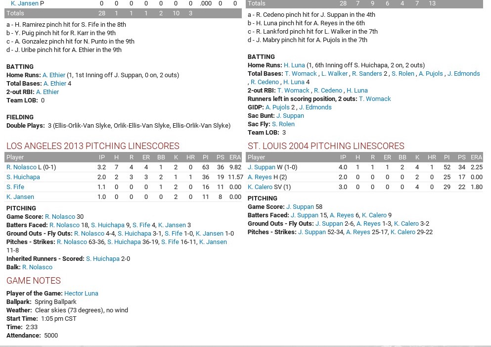 Sorry, these spring training boxscores are hard to post they are so long.