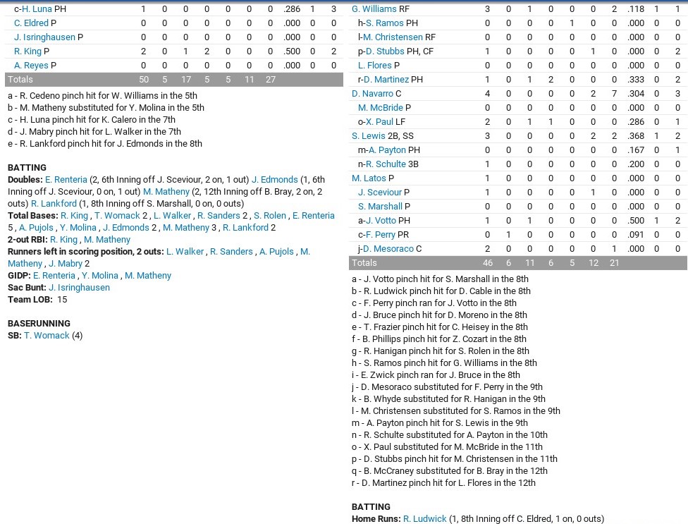Reds 6, Cardinals 5, 12 innings