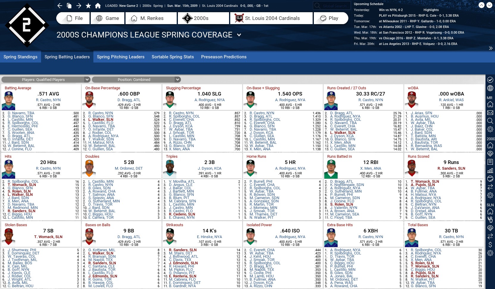 The 2004 St. Louis Cardinals have reported to their Roger Dean Stadium spring training complex in Jupiter, Fla., to begin preparations for competing in the 2000s Champions League. The only major difference I can see is that Larry Walker will be with the team from the get-go, rather than being acquired in a mid-season trade with the Colorado Rockies. Last edited by rink23; 02-11-2018 at 06:10 AM. Reason: I can |