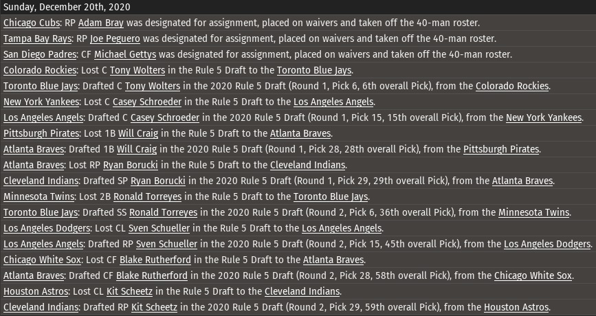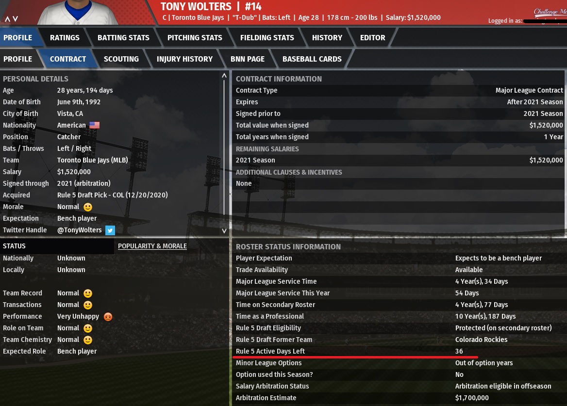 So I just finished the Rule 5 draft after the 2020 season and two of the players taken have less than the required 90 days shown on the player profiles. One player taken does not show any days required.