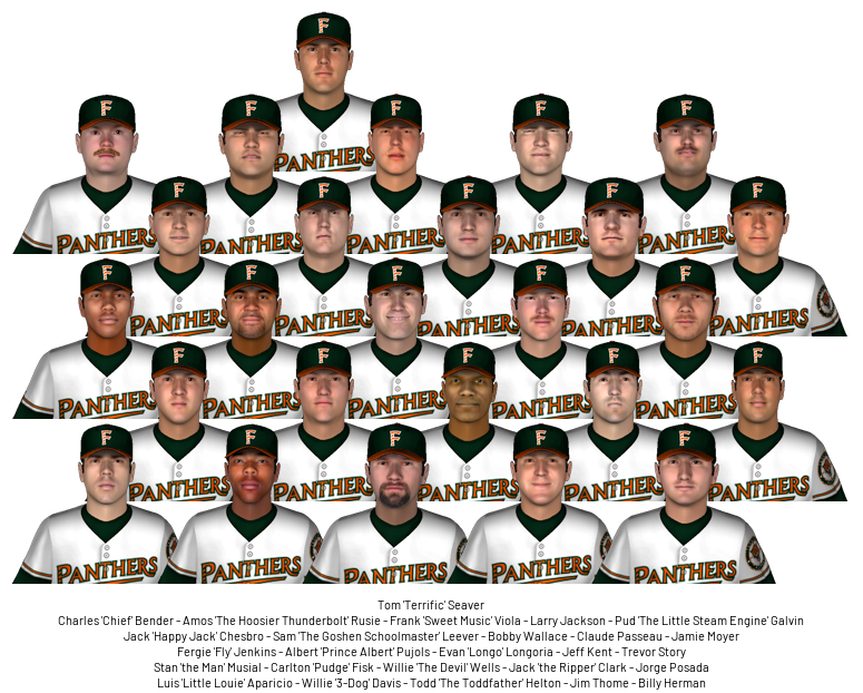 One of the more evenly-balanced squads in the league, and I expect them to be pretty consistent and competitive throughout. Pujols leads the offence, and with Kent and Longoria also peaking early this should be an exciting team to watch. (Not sure how the experts have come to predict them to score the least runs in the SE.) Their pitching, anchored by Tom Terrific and the mighty Chief Bender, will eventually be similarly equal-weighted. But in these early years it is this facet of their game that will hinder the Panthers’ performance, with a lot of late-bloomers among them. Defensively, they are one of the better units, with only catcher and 2B looking thin. What Aparicio will lack with bat in hand he’ll make up for with the glove, same goes for Willie Davis in CF. I’m not sure they’ll ever win a Championship in this league, but nor do I think they’ll finish out of the running too many times. 1961 PREDICTIONS RECORD: 83-85, 3rd in South, 10 GB HITTING: .245 / 125 HR / 686 R / 123 SB PITCHING: 3.75 ERA / 801 K / 707 R / 526 BB