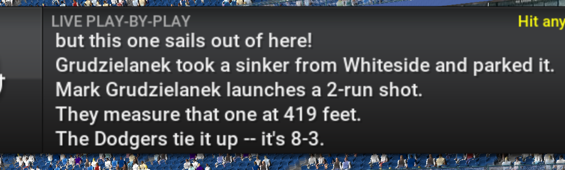 as always appreciate the feedback...especially corrections. That said, I did add a few Jerry Coleman bloopers "He's under the warning track" etc...so it might not be a typo, it might be as intended. But if you think it's wrong or it doesn't work right in the game, let me know. I'm getting better and more efficient, but often times things might not pop up in my gameplay, so your feedback is important |