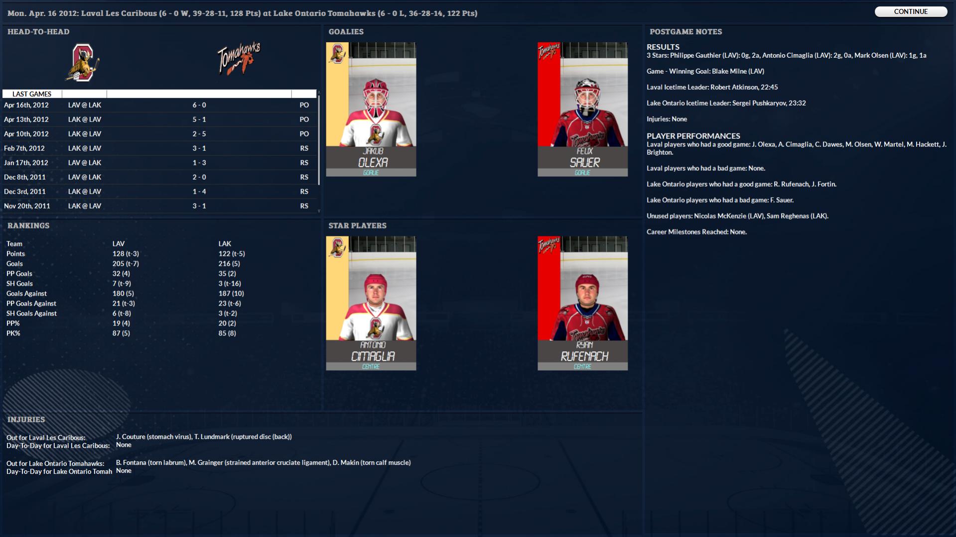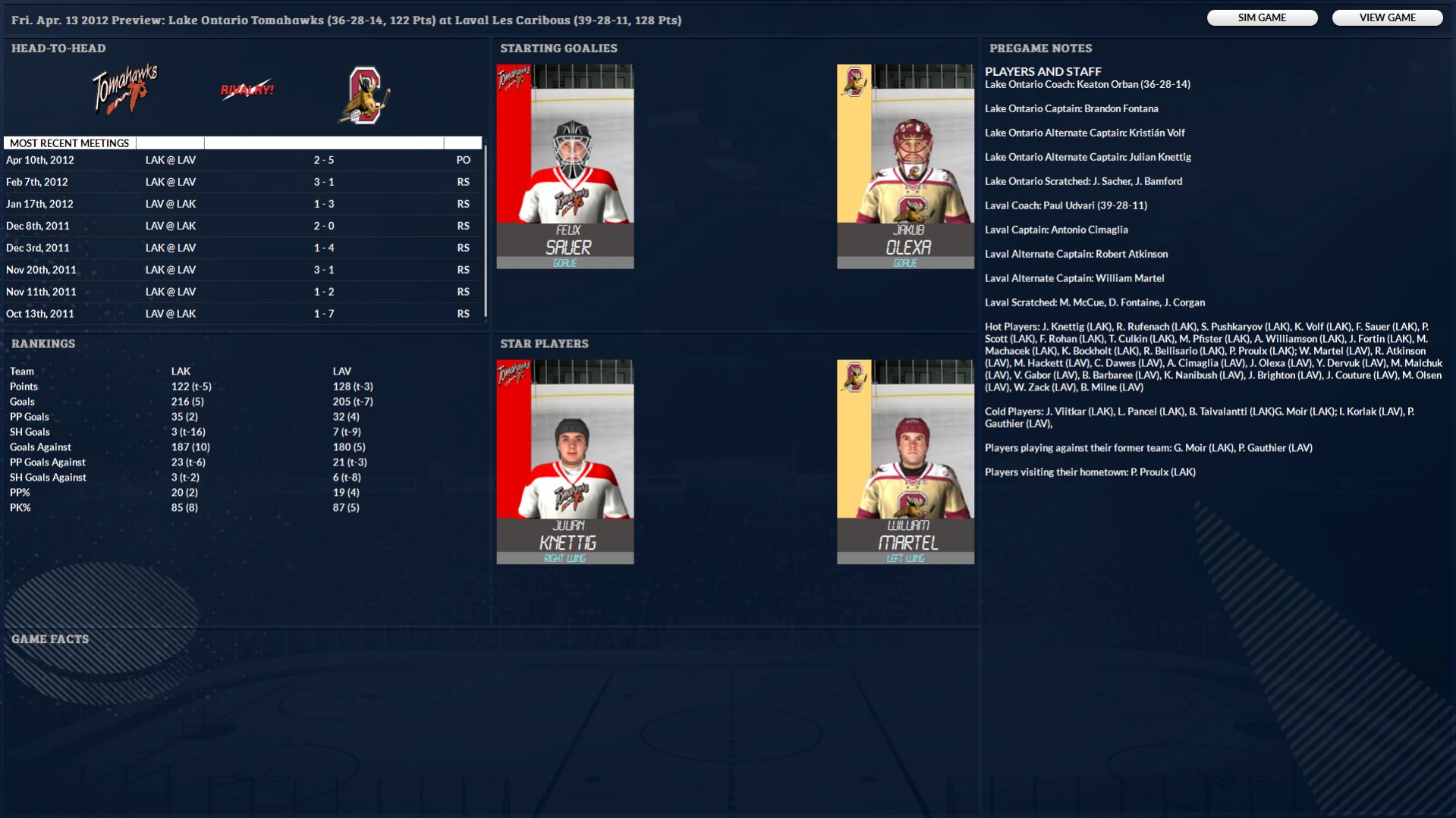 Here is a look at these teams in the next few posts .. Here you can see the Team Info and Histories - Laval is one up on Lake Ontario in championships, But Lake Ontario is amongst the top in franchise regular season wins, and both have several playoff appearances.