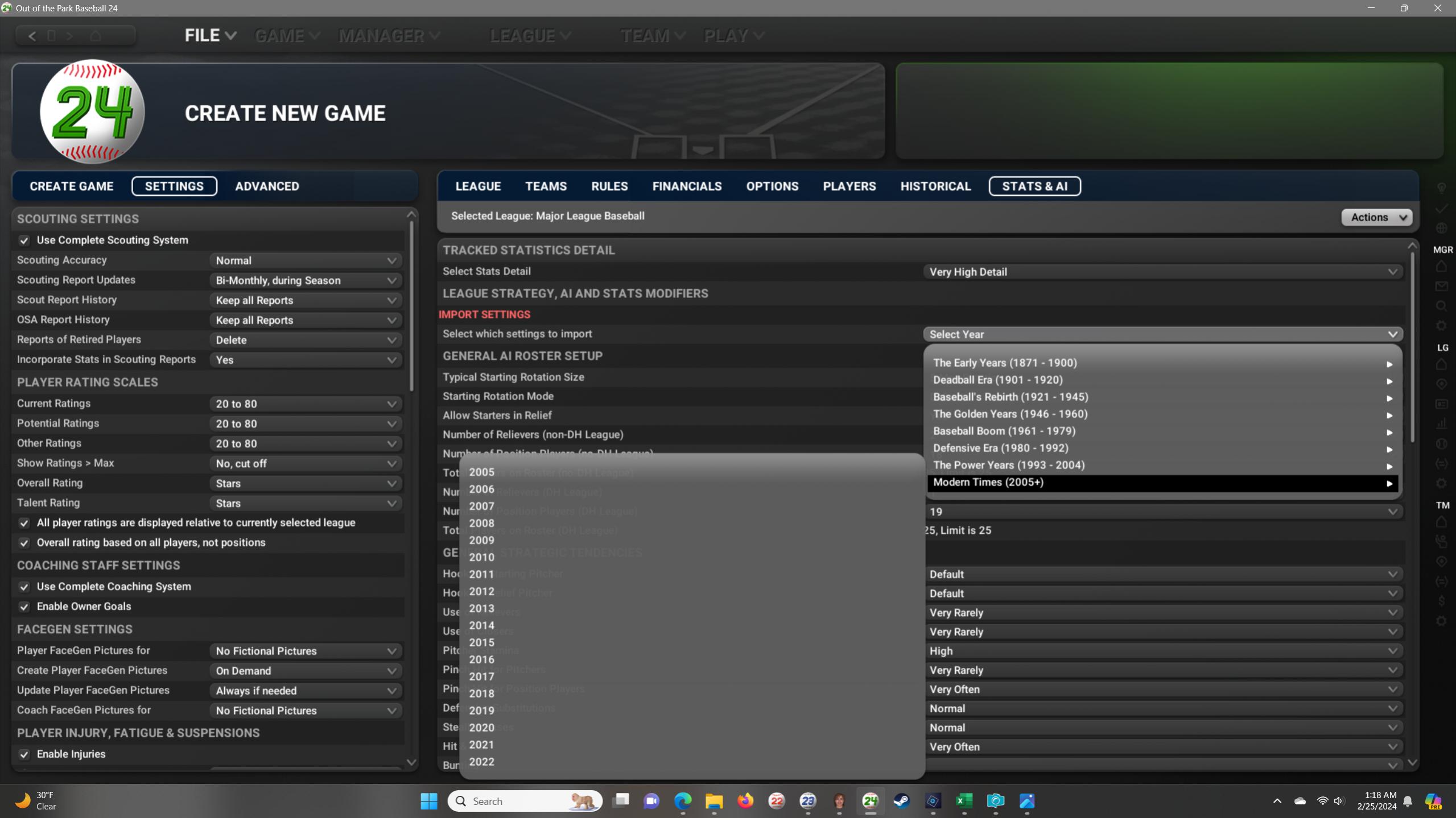 Hey! So, I'm doing a massive, 48-team league beginning play in the mid-19th century. However, what I'd really like is to see the stats output to be that of the 21st century, specifically 2010-present, or thereabouts. I've tried using the "League Functions" specific year tools and no matter what I've done, players are only hitting 2-3 home runs a season and pitchers have odd stats, so on and so forth. Is there something I'm doing wrong? Wondering if anyone has accomplished this and knows what I could try.