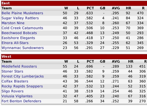 2049 Ruthlandian Union East and West Division Mid-Season Standings and Team Statistics