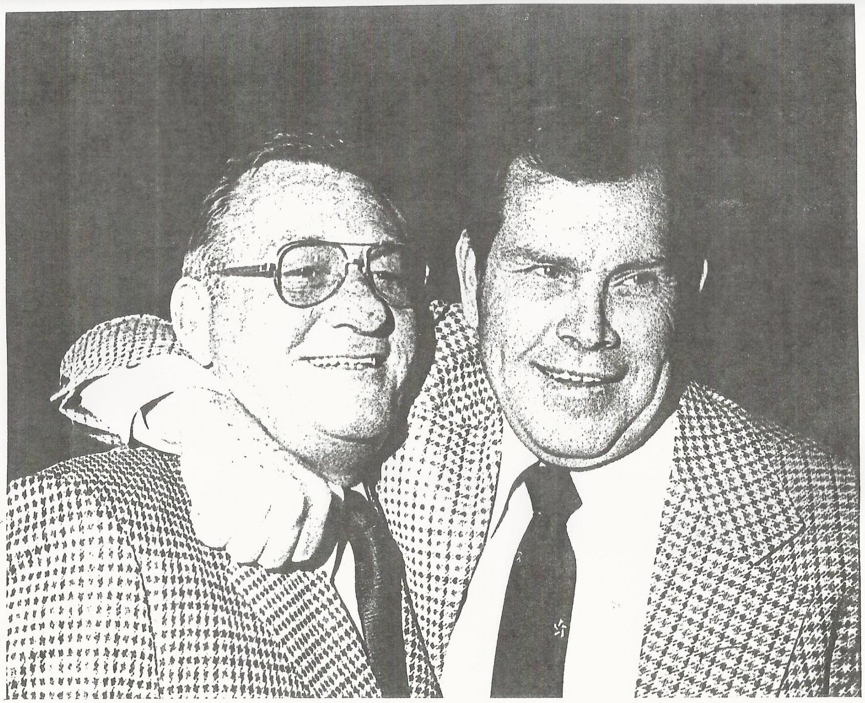 January 22, 1976: Bob Lemon (left) and Robin Roberts, putting a bear hug on "Lem", get the news that they have just been elected by the Baseball Writers of America Association (BBWAA) to the National Baseball Hall Of Fame's induction class of 1976. Roberts was elected to Cooperstown enshrinement in his 3rd year of eligibility. For Lemon, 13 proved to be his lucky number as he was finally elected after 12 unsuccessful tries.
