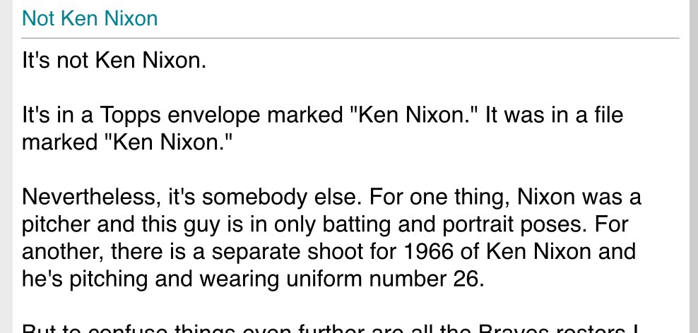 The Topps envelope I referenced earlier, erroneously marked "Ken Nixon, Braves, OF"