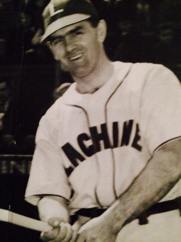 NHL star Maurice "Rocket" Richard played quite a bit of fast semipro ball and one year of full pro ball in 1947 with the Drummondville Cubs of the Provincial League. Here he is in the uniform of the Lachine team of the semi-pro/independent version of the Provincial League. His Canadiens hockey team-mate Doug Harvey (not to be confused with the umpire of the same name) also played minor league pro ball but I have not found a picture of him in a baseball uniform.