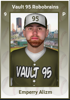 According to Vault 81 GM Mike McGuire, the branding will be better with the 81/95 mix. The uniform has changed for the away jerseys and the caps. McGuire sent us at Publick Occurences the baseball card of their top prospect, Emperry Alizm.