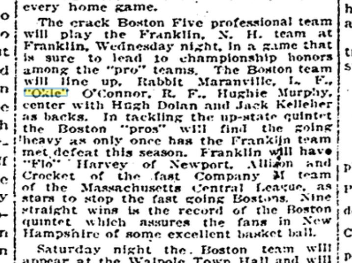 I found a nice clue on Johnny O'Connor. He was a basketball star and in 1916, he was teammates with Rabbit Maranville on a local Boston basketball team.
