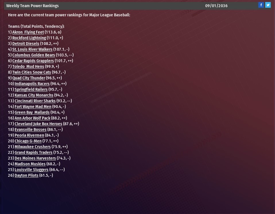 MBL news: Sept. 1 -- Week 21 - Awards and standings