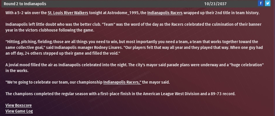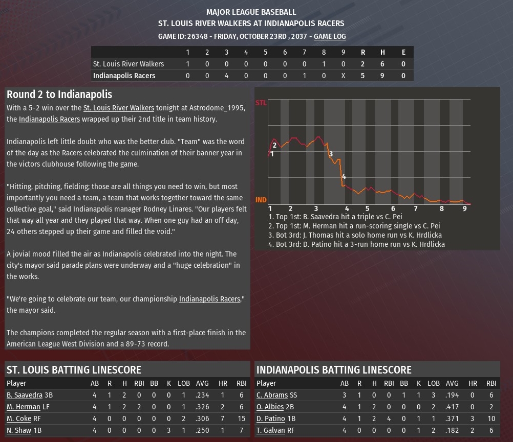Down 1-0, Indianapolis scored four runs in the bottom of the third inning and the Racers rode it to a 5-2 World Series championship clinching win in Game 5 at the Astrodome (1995).