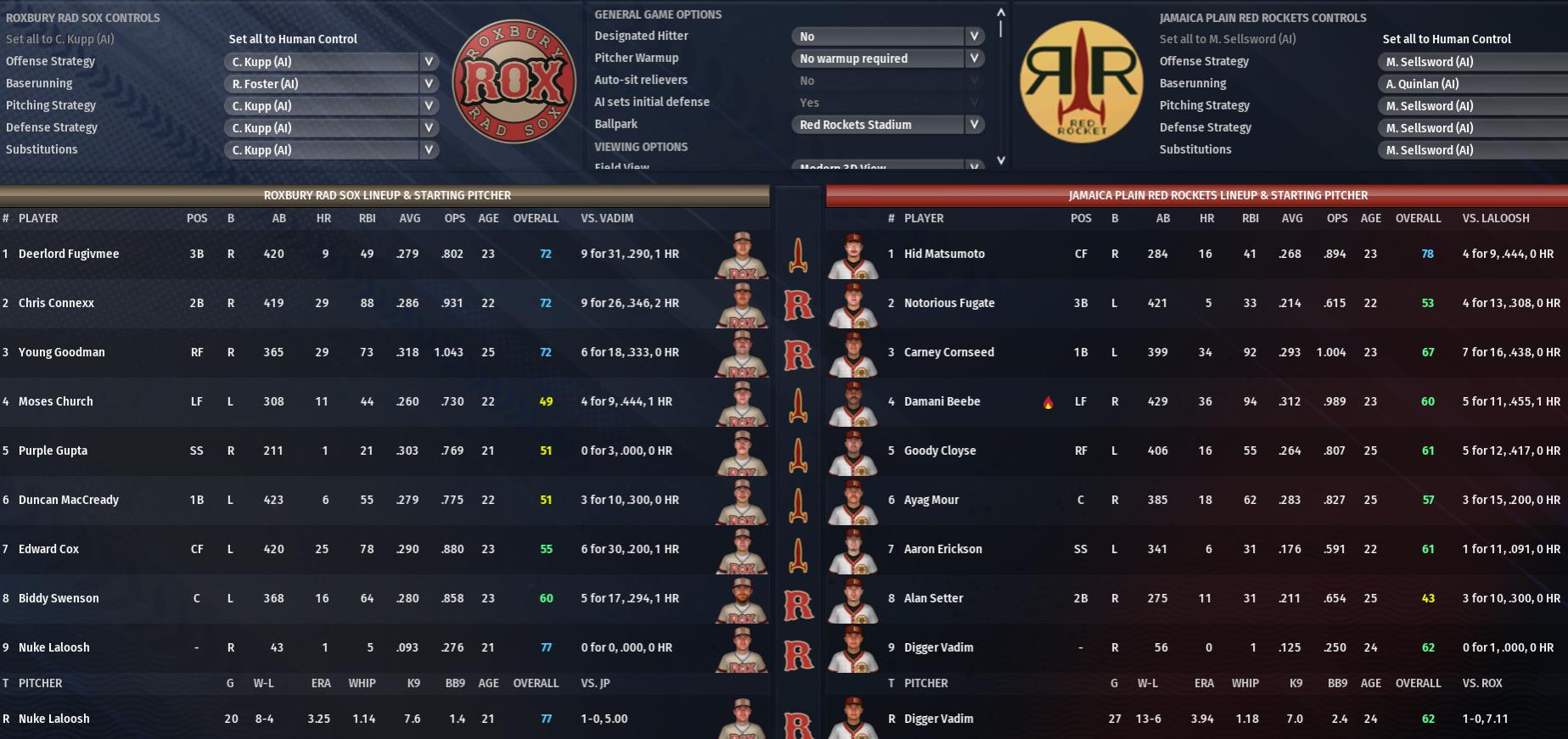 Jamaica Plain Red Rockets (#2, 66-42) vs Roxbury Rad Sox (#3, 65-43)