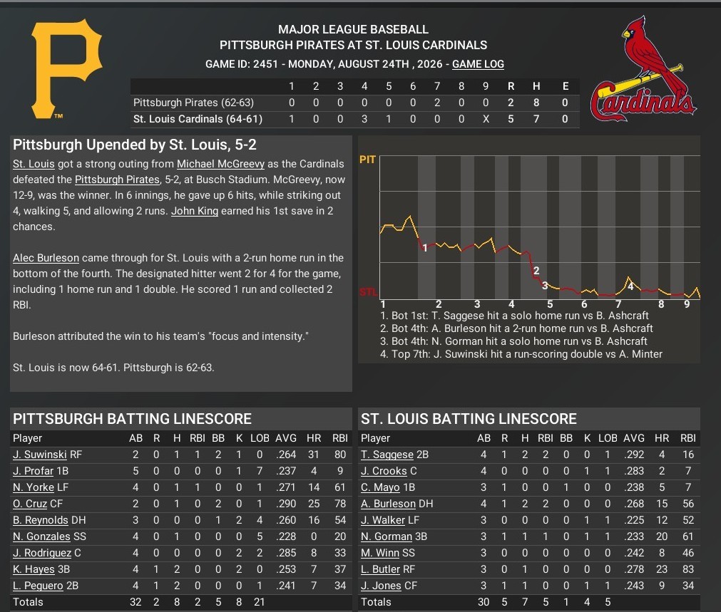 Cards news: August 24 -- St. Louis Cardinals 5, Pittsburgh Pirates 2