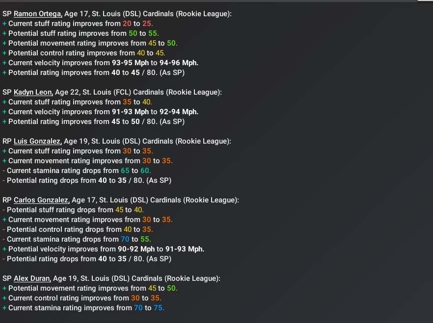 Cards news: June 1 -- Player Devlopment Report (Part 1)