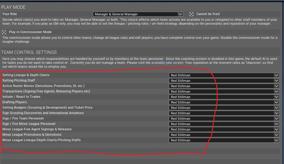 I wanted only the managerial duties. And yes, the GM sent my best spring performers down. I get that. My problem is having to FORCE control over my lineups. If I turn in my batting order, and it is over-ridden by whomever, then what is the point of the manager? If I want my 5th starter to pitch on the day after #4 just pitched, but, if I'm not paying attention, he will get skipped even before his first start of the season and at 100% rest, that's an issue.... I'm sure it's something I am not understanding about the game, which is why I am asking... |
