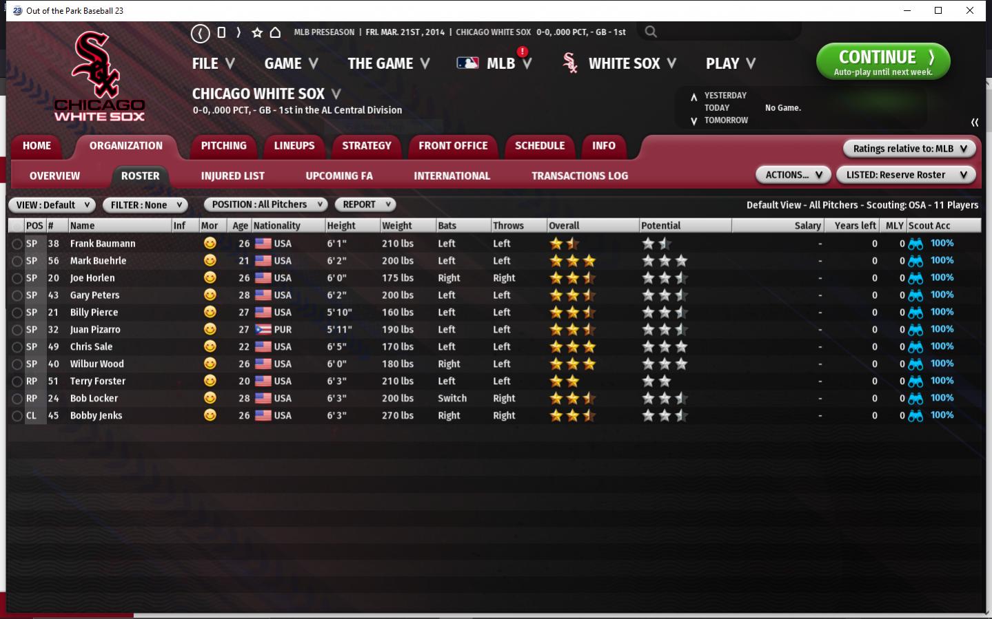 I like my team but we will struggle vs several teams. I plan on playing everyone, so if players struggle i will move them to the Reserve Roster and bring up others. As players retire and my 40 man roster is under 40 players I will add other Sox players and same for other teams.