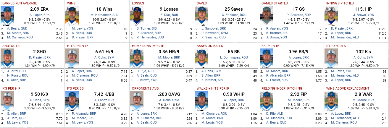 BEST RECORD - Buffalo Bruisers: 22-11 (now 71-73) Rochester Union: 21-12 (now 90-54) Manhattan Victory: 21-12 (now 81-63) Syracuse Maples: 18-15 (now 75-69) Albany Dragons: 17-16 (now 67-77) Queens Diamonds: 15-18 (now 83-61) Staten Island Bulls: 14-19 (now 65-79) Yonkers Sixers: 14-19 (now 65-79) Bronx Phoenix: 12-21 (now 59-85) WORST RECORD - Brooklyn Knights: 11-22 (now 64-80) 2nd August: It may only have been his second game for the team since being moved up from Triple-A Scottsville, but 38-year-old Paul Bork pulled a great performance today in Buffalo’s 8-0 victory over the Yonkers Sixers. Allowing only 5 hits and no walks, the management sang his praises while 2B Dwayne Russell and 3B Andrew Wheeler inflicted serious damage with the stick in their hands. “Everyone on the team played great” said the Manhattan-born hurler, “and I’m glad I didn’t let anyone down.” Bork is on an ERA of 1.80 from 15 innings played in two games for the Bruisers. Bork would be released from the Bruisers on the 14th August, but is now on a short-term contract with the Albany Dragons as of the 31st of the month. 3rd August: Bronx reliever Shane Starling is reportedly on last warnings today – as it turns out, allowing 3 hits, 7 base-on-balls and 5 runs in the 13th-inning doesn’t tend to go down too well with anyone, and particularly not the management of the Bronx Phoenix. MVP Oscar Hernandez, DH for the game-winning Sycamore Maples, expressed sympathy for Starling afterwards, but added “I think there were 3, maybe 4 walk-round runs in that inning. After struggling for so long, it was almost too easy.” Syracuse won the game 14-9 in the end. 4th August: He put on a brave face afterwards, but it was obvious that Phil Newmark’s diagnosis of an arthritic elbow was a major blow to the Syracuse reliever. “I’m 26 years old and I’ve got the elbow of a 60-year-old!” he joked to press, before adding “doctors are recommending I take some time out, and then playing again next season. I’ve never had arm issues before so I’m hoping for a misdiagnosis and all will be well.” Newmark has made 51 appearances so far this year, making 68 strikeouts and finding a 3.49 ERA. 6th August: “It’s a blow to lose him, but I think everyone in Manhattan is glad it’s nothing more serious” said one fan after Roger Colon’s ankle injury was finally diagnosed as a sprain today, three days after the horrific-looking roll in Victory’s 3-2 defeat to Rochester on the 3rd. The Mexico-born centre-fielder, 28, said to gathered media that “it’s annoying to be out, definitely, but doctor’s think I might be back for playoffs, if we make them. Playoffs were the aim at the start of the season and they’re the aim now. I’ll be back!” Colon is hitting 0.281 with 23 home runs, 65 RBIs and 65 runs. 7th August: Bronx first-baseman Edwin Badillo hit the big two-zero on home runs today, as he sailed 2 over the boundary at Phoenix Park to help his side to a 10-2 trash-job of top-of-the-division Queens Diamonds. Badillo, who also hit a 2-RBI double and finished the game with 6 runs batted-in, said afterwards “it was pretty much a perfect day for me – knowing I had a big role in today’s win feels pretty special.” Badillo’s 20 home runs are complemented by 63 RBIs and an average of 0.262 this season. In other news, Manhattan Victory’s Benedetto Speranza becomes the first ever pitcher to win an NYBL Player of the Week award. Over his two games this week, the 25-year-old leftie six-pitcher managed 10 strikeouts in 13 innings, leaking only one run and maintaining a perfect 0.00 ERA. “It’s fantastic to get recognised, especially as a pitcher in this league” said the Venezuelan, with an OBA of 0.259. “I only hope I can continue to impress!” He is currently pulling an ERA of 4.01 (almost dead-on league average) and has logged 110 K’s. ![]() 9th August: Losing his temper in Rochester’s 5-6 defeat to the Staten Island Bulls today cost 1B Angelo Morales more than the 2 games issued to Bulls starter Ed Magaora – it cost him his job. “We were watching him closely anyway,” said Rochester GM Mario Rojas, presumably alluding to Morales’ 0.214 batting average, “but representing the proud city of Rochester means you set a standard. We couldn’t hold Morales on after that.” His demand for any interested parties is likely to be around the $380,000 mark. 10th August: “It was nervous watching, for sure,” said MVP Mike Lewis today, as he watched the Yonkers Sixers beat the Manhattan Victory 5-4, in a 15-inning deathmatch that saw both teams score in the 13th. Lewis, who was subbed from the game at 3-2 to Yonkers after 8 innings, said “yeah, watching them score in the 9th was tough, especially so soon after I was taken off. But watching Mike [Cooper, 2B] slam that pitch out in the 15th made it all worth it. Was a good day in the end.” 11th August: Marcus Lunsford baffled batters at Albany’s Hoffmann Park today, helping his team to a 3-0 victory and recording Buffalo’s 9th win on the trot. Lunsford, 25, gave up 5 hits and 1 walk in a 4 K game, and impressively played all nine innings of the game. “He didn’t seem to be flagging and obviously wanted to go the distance,” said Buffalo manager Angel Molina, “so it seemed silly to take him off.” After a slow start to the season bouncing back from bone chips, Lunsford has an ERA of 4.31 and has 72 K’s in 119 innings. 12th August: Fans were phoning in all day to wish Staten Island reliever Ari Lictenegger a swift recovery, after news of shoulder inflammation were made public. In his famous Austrian accent, Ari said in a statement “I’d like to thank each and every person that’s sent their support to me today; to know I won’t be able to play baseball in so long is awful, but it’s been made that little bit easier by you guys.” Lictenegger, famed for his 99mph fastball and one of the best cutters in the league, wi