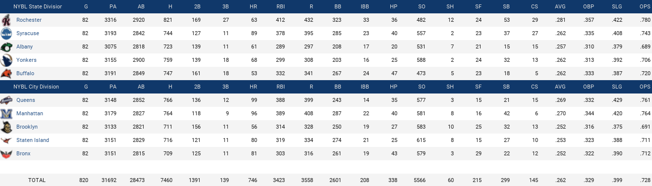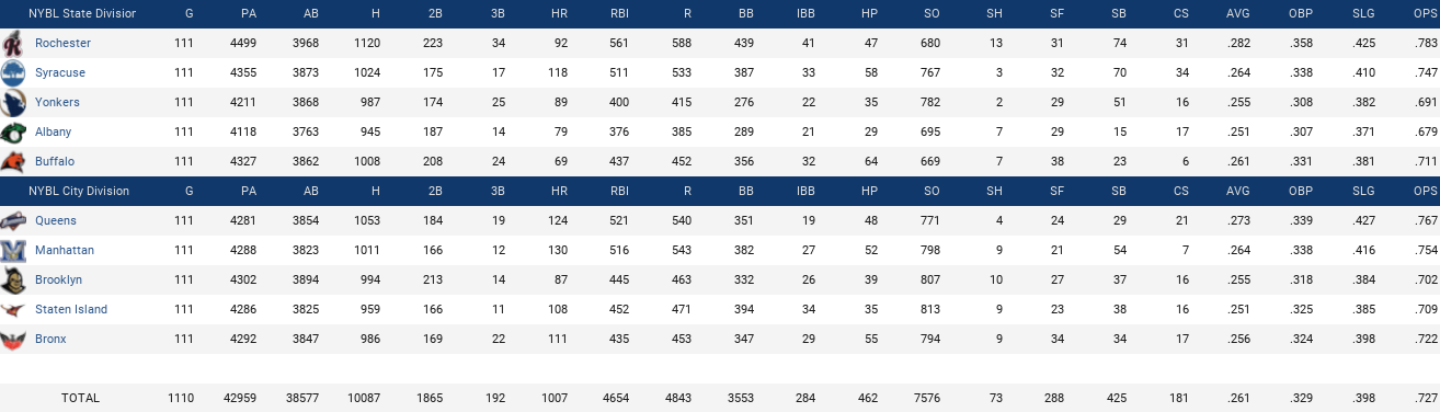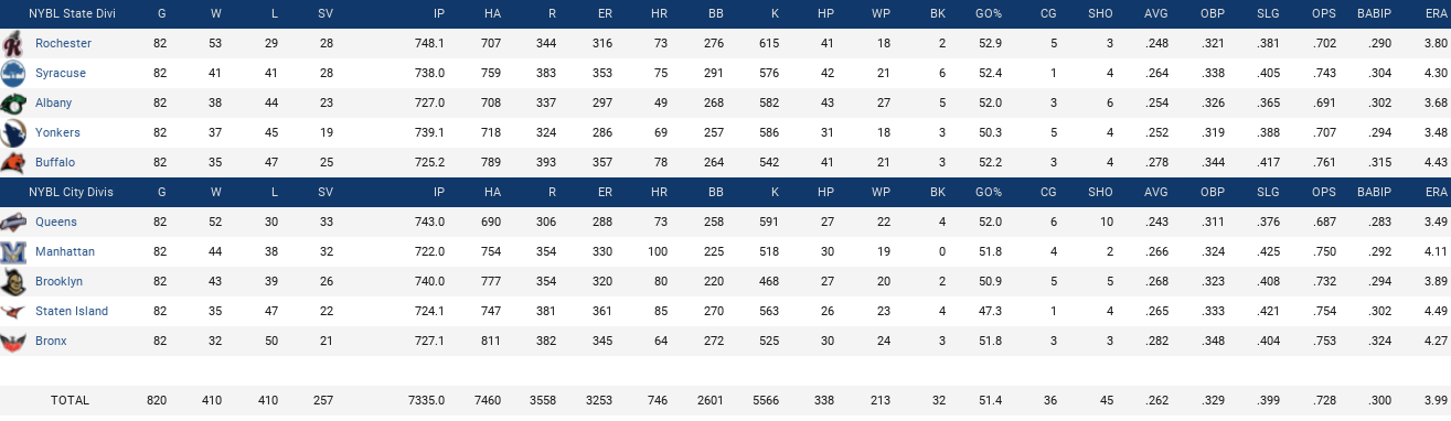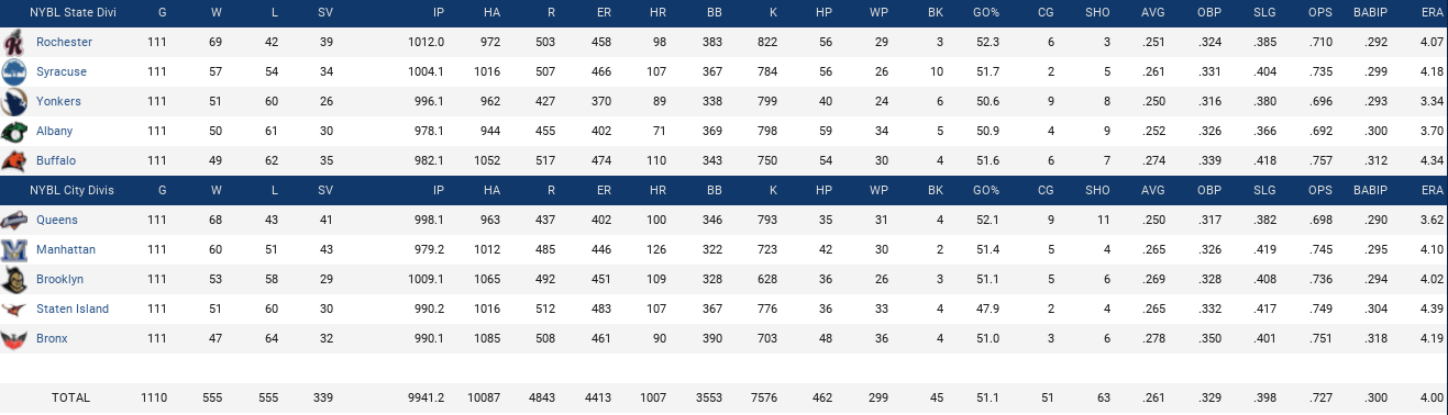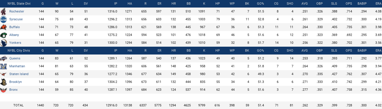 Predicted finish: 5th in the State Division (65-79, 596/609 runs for/against) ![]() Representing the state capital, pundits are expecting that the Albany Dragons are going to have their work cut out if they are to avoid an unwelcome first season – bottom of the State Division and even last overall on win percentage is being talked about. It’s likely that if the Dragons can make a splash, it will be on the grounds of their defensive prowess, not their batting – Dutch Antillean starter Miguel Hernandez is expected to have an excellent season, and Dominican Daniel Rijo should make a reliable second-in-order on the batting line-ups. While their batters haven’t been talked about with much vigour, it’s worth keeping an eye on 33-year-old heavy-hitter Matt Baratta, and the 24-year-old speed king Todd Morse. Albany also have reportedly the least exciting youth setup waiting in the wings, but 3rd-rotation Matt Cormier and 5th-rotation Francisco Burruel nevertheless find themselves in the pitching roster going into the season. BRONX PHOENIX Predicted finish: 2nd in the City Division (77-67, 627/647 runs for/against) ![]() In line for wildcard spots in the City Division, the Phoenix are expected to give Manhattan a real run for their money for the division title. Noises are being made about 31-year-old Montreal native Quincy Kennedy, who is expected to be around the top of the clip percentages at the end of the season, alongside 30+ home runs and 100+ RBIs. Keep an eye on fellow slogger Luis Ventura as well. Pitching may be a slight sticking point for the Bronx, but 24-year-old Pedro Alvarado should be a more-than-handy first choice starter, with secretive 25-year-old Bret Melgoza also being worth a watch. The Phoenix also have a very exciting prospects list, with no less than 5 outfielders (Oscar Carrera, Phil Carter, Jordan Ramirez, Zack Watkins and Adam Buckley – remember those names!) and a pitcher making the OSA Top 20; shortstop Carrera, centre-fielder Carter and 5th-in-rotation starter Steve Allen should all make their debuts this year. BROOKLYN KNIGHTS Predicted finish: 5th in the City Division (66-78, 587/616 runs for/against) ![]() Despite having a respectable pitching contingent, the Knights look set to have a miserable inaugural season with arguably the weakest offensive roster of the competition. Australian third-baseman Harry ‘Tadpole’ Jolly (the club have requested not to ask about the name) should notch up a few home runs and find the gaps, but he really is all the Knights have to write home about. They do have a not-so-secret weapon in Jose Martinez, however, a sinker/curveball/changeup specialist who is reputed to be the best starter in the league, as well as handy backup in 41-year-old veteran Matt Boylston and impetuous cutter fan Arturo Lopez. Manager Jon Aguirre (with only a year to his name) must get the best out of his pitching staff this season; GM Scott Pempek (with only two) needs to find some batting talent. Brooklyn do have 16-year-old prospect Jon Silva (currently on the international roster) in their ranks, and will hope that Single-A pitcher Mike Henke continues to grow. BUFFALO BRUISERS Predicted finish: 1st in the State Division (79-65, 634/596 runs for/against) ![]() With respectable talent both in their offensive and defensive ranks, the Buffalo Bruisers are expected to AT LEAST make playoffs this season, and are currently being pipped to take the State Division ahead of close rivals Rochester. Both #1 prospect Andrew Wheeler and 1B Willy Morales are expected to have great seasons with the stick – Wheeler should be round-about 0.300/0.400/0.500 and be knocking on 30 HRs, while Morales should be nudging the top of the RBI charts. Additionally, 3 of their pitching lineup are drawing interest in these early days – CL Matt Kaehr, arguably the finest closer in the league; Enrique Diaz, who should manage a sub-3.00 ERA; and Marcus Lunsford, the only knuckleballer in the competition. Outside of Wheeler, the Bruisers’ prospect list is looking a little weak right now… but what a prospect. MANHATTAN VICTORY Predicted finish: 1st in the City Division (78-66, 731/702 runs for/against) ![]() TENTATIVELY being pipped for the City Division title at the end of the season, Manhattan undoubtedly have the most impressive offensive deal in the competition. Both Roger Colon and Ryan Sauer are being talked about regarding slugger of the year awards, and with contact hitter Matt Campbell and all-rounder Marty Ruvalcaba also in their ranks, the last thing Victory will be worrying about is likely runs. What will be interesting, though, is if they can keep the runs out – 36-year-old Jim Trent is perplexingly being talked about in the Pitchers To Watch list, when arguably the circle-changeup-wielding Miguel Martinez should be there instead. With a lot of middling young talent and nothing exceptional, GM Nate Payan will have to make securing Manhattan’s future a priority. QUEENS DIAMONDS Predicted finish: 4th in the City Division (70-74, 642/649 runs for/against) ![]() The big financial players in the NYBL, the Diamonds nevertheless have some work to do with actual baseball if they’re going to pose a serious challenge in the City Division this year. Queens play host to TWO sumptuous power hitters, in the forms of Justin Stenke and Jeff Michaux – additionally, Costa Rican 1B Edward Sanchez is an adept gap hitter as well as with a bit of power up his sleeve. Similar to Manhattan, the choice for Pitchers To Watch this year is odd – despite having the fantastic British Columbian starter Audrey Beals, focus is instead being placed on the okay, but ageing (at 38) and definitely inferior Mike Moore, currently third in the running. Queens do have potential worldie starter Luis Suarez in their talent pool, but playing in the rookie leagues it is clear he has a long way to go before his potential is realised. ROCHESTER UNION Predicted finish: 2nd in the State Divisio