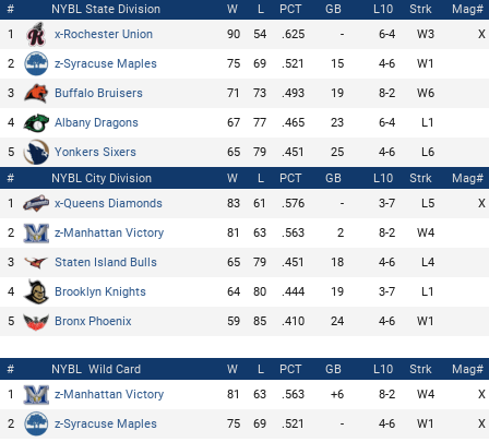 LT: Hi there, it’s Leonardo Totti coming to you live from the packed Irondequoit Grounds in Rochester for the inaugural New York Championship Series clash, between the Rochester Union and the Syracuse Maples. I’m joined by the ever-informative Brian Guthrie today, but not here – Brian is at the beautiful Rockaway Stadium in Queens for their clash against the Manhattan Victory, isn’t that right Brian? BG: Hey Leo – you’re right, it’s a beautiful place to be right now. They’ve just turned the floodlights on this past few minutes which looks amazing, as the crowd are forming seas of not only the light blue of Queens but also the dark blue of Manhattan. The atmosphere is electric, and everyone is getting excited for what should be a wonderful game of baseball. LT: Absolutely. Now, we’ve got about 15 minutes before Union pitcher Mario Cisneros gets things underway here, which just about gives us time to weigh-in on the competition beforehand – so first, Rochester v Syracuse… for me, this is Rochester’s series to lose. They’re 7 games ahead of City Division winners Queens and 15 games ahead of the Maples, and it’s largely due to that danger trio of Keith Schmeling (who of course has just claimed the Triple Crown), WAR-leader CF Israel Mejia and Jose Marquez, who has been unfairly looked over this season but nevertheless has topped the number of double hits and only has 2 fewer runs than Schmeling. What’s your take on it? BG: If I had to choose a side on pain of death I’d agree and say it’s Rochester’s time, but I really think it’ll be a close-run thing – possibly 5th game stuff. LT: Really? How so? BG: In my opinion, it rests on Bryan DeMond against Keith Schmeling, and I honestly believe that DeMond will show his best colours in these playoff scenarios. Bryan has a WAR only bettered by Mejia, is margins off of the 1.000 OPS and with Mejia on the DtD list with a dodgy ankle and sore elbow, I’m honestly not sure if he’ll be playing for the next few days. Neither sides have played particularly strong defensive baseball but have topped their division regardless – 4.08 ERA for Rochester and 4.19 for Syracuse, whereas Buffalo, Albany and Yonkers have all managed sub-4’s – but Rochester have also lost starters Victor Garcia, Bobby Santillan and Luis Dominguez, and I’d say that Syracuse have been marginally better on starters this entire season. I reckon that yes, Rochester will be in the final, but if DeMond, Kennedy, Lopez are having good days and Redfern is on his game, then the Union are going to be given a tough old time doing it. LT: Interesting. So, we’re both saying that Rochester are going to be in the final then – what about your end? Queens or Manhattan? BG: Aaaaah… I reckon this is going to go Manhattan’s way Leo. If you’d asked me this time last month then I’d have said Queens, 100%, but the Diamonds have hit a skid of form and have only won three games in their last 10 – and even worse, haven’t won a single game in 5. Manhattan however are in good form, having won 8 games over the same period and on a 4-game winning streak, and have only looked to be getting stronger and stronger as the year has progressed. If Manhattan can get to the 9th in the lead then they’ll probably win – Mike Yerger has done a superb job as closer this year, although the Diamonds’ Roberto Sanchez hasn’t been a slouch, either. Overall though, we’re looking at Manhattan’s attacking prowess against Queens’ defensive might, and I think overall, it’ll be just enough for the Victory. LT: The only thing I would say – and I’m sure you’re already acutely aware of this being in Queens right now Brian – is that the Diamonds have such a strong fanbase, and some say this is why they’ve got the best home record in the entire competition. And of course, the first two games of the series are being played at Rockaway Stadium, so Manhattan will have to watch out that they don’t get buried before the series moves to Stuyvesant Stadium. BG: Yeah, that’s a pretty good point. LT: Thank you Brian, means a lot. So, we’re lumping for Rochester and Queens, then? BG: Rochester and Manhattan, for me. LT: Ahaha, nearly got you there. We’ve only got a couple of minutes to go before things get underway, so let’s turn our attention to our respective games, for this inaugural, 2017 New York Championship playoff series! |