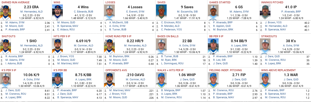 BEST TEAM RECORD: Brooklyn Knights, 18-10 WORST TEAM RECORD: Bronx Phoenix/Syracuse Maples, 9-19 1st April: Opening Day saw a 9-2 win for Albany over Syracuse, which saw Matt Baratta claim the first home-run in NYBL history, with a 3-run HR, no less. Other scorelines saw 3-1 for Yonkers over Brooklyn, and a 5-4 win for Manhattan versus Buffalo, settled in the 9th. Brad Bromer recorded the first SO of the season in Staten Island’s edgy 1-0 win over the Bronx, but the game against Rochester and Queens was postponed for technical issues. Also, Opening Day claimed not one, but two stars pitchers. Knuckleballer Marcus Lunsford’s start to the season lasted a mere inning, in Buffalo’s eventual 4-5 defeat to Manhattan today. Pitching against 1B Mike Kelly, Lunsford seemed to be in a lot of pain, and was taken off for reliever Joe Hedstrom. He will likely be out for 6 weeks with bone chips; when asked about the injury, he responded “I just hope that it doesn’t put kids off learning the knuckleball pitch. The timing looks bad, but it’s really no worse than any other pitch out there, really.” The other casualty, arguably more serious, is the devastating blow to the Brooklyn Knights of losing Jose Martinez, pipped as a candidate for the pitchers’ award at the end of the season. Similarly to Lunsford, after only one inning Martinez shook his head violently to the bench, obviously in a lot of pain. It took several days, but Martinez was confirmed to have torn his UCL – a season-ender. “I’m gutted,” said manager Jon Aguirre, “we have a talented pitching roster, but there’s no one quite like Jose.” There was no comment about how this would affect his chances of signing an extension to his contract, due to expire at the end of the year. 3rd April: Bronx 3B Quincy Kennedy becomes the first man to hit more than one home-run in a single game, as the Phoenix cruise to a 7-2 victory over the Staten Island Bulls. “Having a man like Quincy on your team really boosts everyone,” Bronx manager Josh Simpson said. “That’s 3 games and 3 home runs now. Couldn’t be happier!” 7th April: Justin Howard batted an absolute masterclass for the Albany Dragons today, going 5-for-5, hitting 5 singles and scoring a run, going some way to helping his team to a 4-2 victory over the Bronx Phoenix – settled eventually in the 10th by a 2-man homer from Matt Baratta. “It’s nice to be recognised today but it’s not just me,” the first-baseman from Hempstead said. “Obviously everyone put a lot of work in, and it was Matt that saved the day in sudden-death hour.” 10th April: Shane Allen claims the inaugural player-of-the-week award. The shortstop for the Yonkers Sixers pulled a performance no one expected, recording a 0.520 AVG, 13-from-25, 1 HR and 4 RBIs. “I’m delighted to be recognised this way, for sure,” the Lackawanna native explained. “I barely expected it myself!” The Brooklyn Knights sit top of the power rankings on 149 points, trailed by the Albany Dragons on 148. Syracuse are failing to surprise at the bottom, on 31, after going 2-8. ![]() 14th April: Brooklyn’s Bill Williams had an almighty game against the Bronx Phoenix today, but was unable to prevent the Knights getting thrashed 11-3 at Phoenix Park. Recording 5 hits, including 4 singles and a solo home run, Williams said afterwards “I had a pretty good game out there today. The win would’ve been nice, but it is what it is I suppose. That’s baseball.” Manager Jon Aguirre later said “Bill’s a humble guy and would never say a bad thing about the team, and for that we can only thank him. But he delivered the goods today, and we let him down, and for that, I can only apologise to both Bill and the fans.” Williams is currently sat on a 0.388 batting average. In other news, Rochester slugger Keith Schmeling becomes the first NYBL player to hit 5 home runs today – and then the first to hit 6, as his second home run was the deciding factor in the Union’s 13 inning, 6-5 death match against the Syracuse Maples. When asked about the moment, the 31-year-old workhouse said “to be honest, I’m happier to win the game than to have hit the first 5! But, I’ll admit it’s a nice accolade. What’s important now is to keep focused – there’s guys here expecting to hit 30, 35 home runs this year, and 5’s a long way off that yet!” 15th April: Oscar Carrera rightly got player of the day today, after his own 5-hitter for the Bronx over Brooklyn went a long way to helping the Phoenix come back from 1-5 down in the 7th to win 7-6. After already hitting two doubles in the game, his 2-man RBI double in the 8th propelled his team into the eventual winning position – a feat which he described as ‘just doing what I needed to do for the team’. 24-year-old Carrera, already being touted as a Bronx captain for the future, is currently on a 0.328 batting average, with 6 RBIs and 9 runs from 14 games. 16th April: Syracuse left-fielder Oscar Hernandez looked a bit sheepish today, as he watched his team lose 2-4 to Rochester Union from the sidelines, and rightly so; earlier that day, it was reported that he had an ‘unfortunate incident’ involving a coffee table. While the x-rays look good, according to Syracuse physios, he is still unlikely to be available for the rest of the week. 17th April: Manhattan right-fielder Fred Greenwood claims Player of the Week this week, after hitting .462 with 12 hits from 26, 3 home runs, and 11 RBIs. “My highlight was definitely Saturday’s game against Staten Island,” said Greenwood after hearing the news. “4 hits, 4 RBIs and a home run, and we go 14-7 in front of our home crowd. What more could a man want.” ![]() There were more than a few concerned faces in Buffalo’s South Park Stadium today – at least, from Bronx Phoenix fans, as star man Luis Ventura was seen to grimace and start limping after throwing a ball in the Phoenix’s 4-3 win over the Bruisers