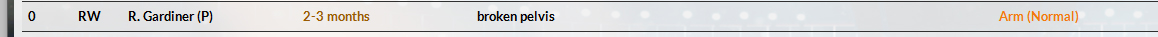Side note: 3 regular season games, I already have two major injuries. The second guy, I decided to PLAY rather than SIM the game. He was injured early in the first period, but still managed to score a goal after that and finish the game as the ice time leader. Minor glitch but something for you to fix in your spare time.
