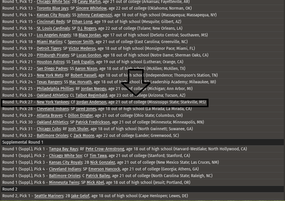 Dice Roll from D&D Dice Roller web site: ![]() Draft Log from the 2020 Amateur Draft: ![]() June 5th, 2020 I know y'all don't want to hear another standard story from a dumb Alabama jock. I can't promise ya this won't be that kinda story. I grew up on a farm in Madison, Alabama. Now, Madison isn't the smallest town in Alabama by far. About 50,000 people live there, which is bigger than a lot of towns in Alabama. We are a suburb of Huntsville, Alabama, which is a bigger city of about 200,000 people. Alabama A&M, what they call a "historically black college", is the biggest college close to us. I have gone to a lot of college games there growing up. Alabama A&M has only made the Division II basketball tournament once since I was born, in 2005. We lost in the opening round to Oakland by 10 points. So needless to say, the basketball team ain't that great. The baseball team is in a Division 1 conference, and sometimes I dreamt of playing there, before I had my sights on higher aspirations. The Alabama A&M baseball team went 16-35 in 2019. Of course, Alabama football is everything in this state. Nick Saban is a god and all the newspapers are talking about is where Tua Tagovailoa is going to be drafted. I like the guy but I'm not sure he's going to have a great NFL career. Name me the last great quarterback that came from Alabama. Probably Joe Namath, and he retired in 1977. Anyways, I'm rambling. I am the 3rd of 8 children and my family hardly ever left Alabama growing up. I was never that educated, and I passed most of my classes but just barely passed. I spent a lot more time of sports and girls than school, to be honest. I had a girlfriend from my sophmore year to my senior year in high school but she ended up going to college in Florida. I still love her but what can you do. I have promise but being a baseball players wife can be scary. One injury and you're done, and she's definately a lot smarter than me. I go to church every Sunday, and I know that God is great and my personal savior. Ii am eternally grateful to Him and all that he has provided me and my family, even though we aren't rich or drive fancy cars or any of that stuff. Anyhow, I had a pretty successful high school baseball career, mostly because sports was the only thing I was any good at, and I was drafted in the 40th round as a center fielder to the Texas Rangers. I thought about it long and hard, and decided that I should probably get a college degree since a lot of my brothers and sisters were probably not even going to graduate high school. I was offered a scholorship at Mississippi State, and I accepted. |