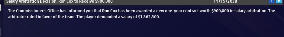 It is Nov. 16, 2038. Today arbitration hearing will be held for nine players. Last edited by rink23; 05-11-2022 at 10:05 PM. |