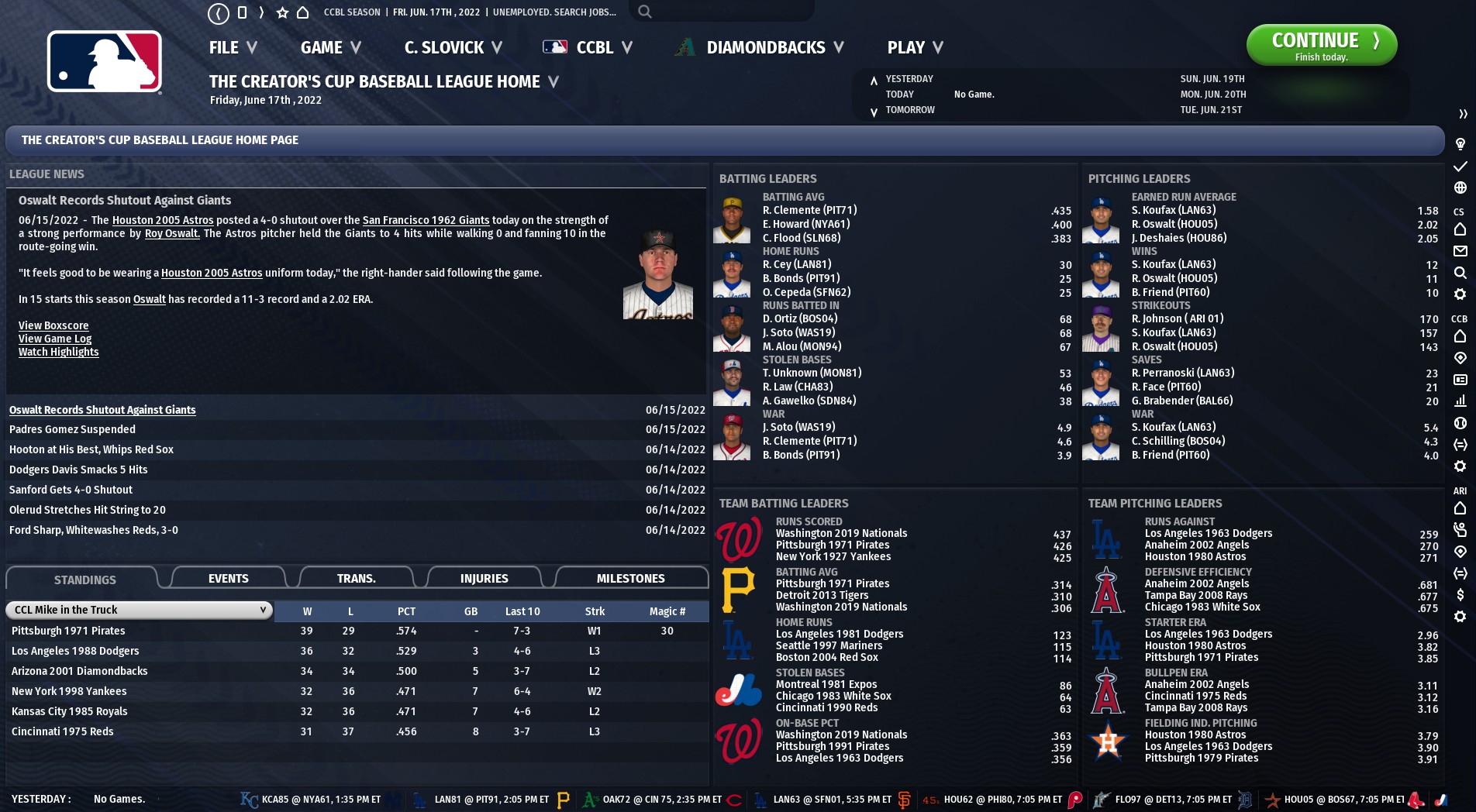 Creator Cup's game 68: Not a playoff game yet, but the heat is being felt. The 79 Pirates are a game behind the 97 Mariners. Big game as the Mariners can go up by 2 games.