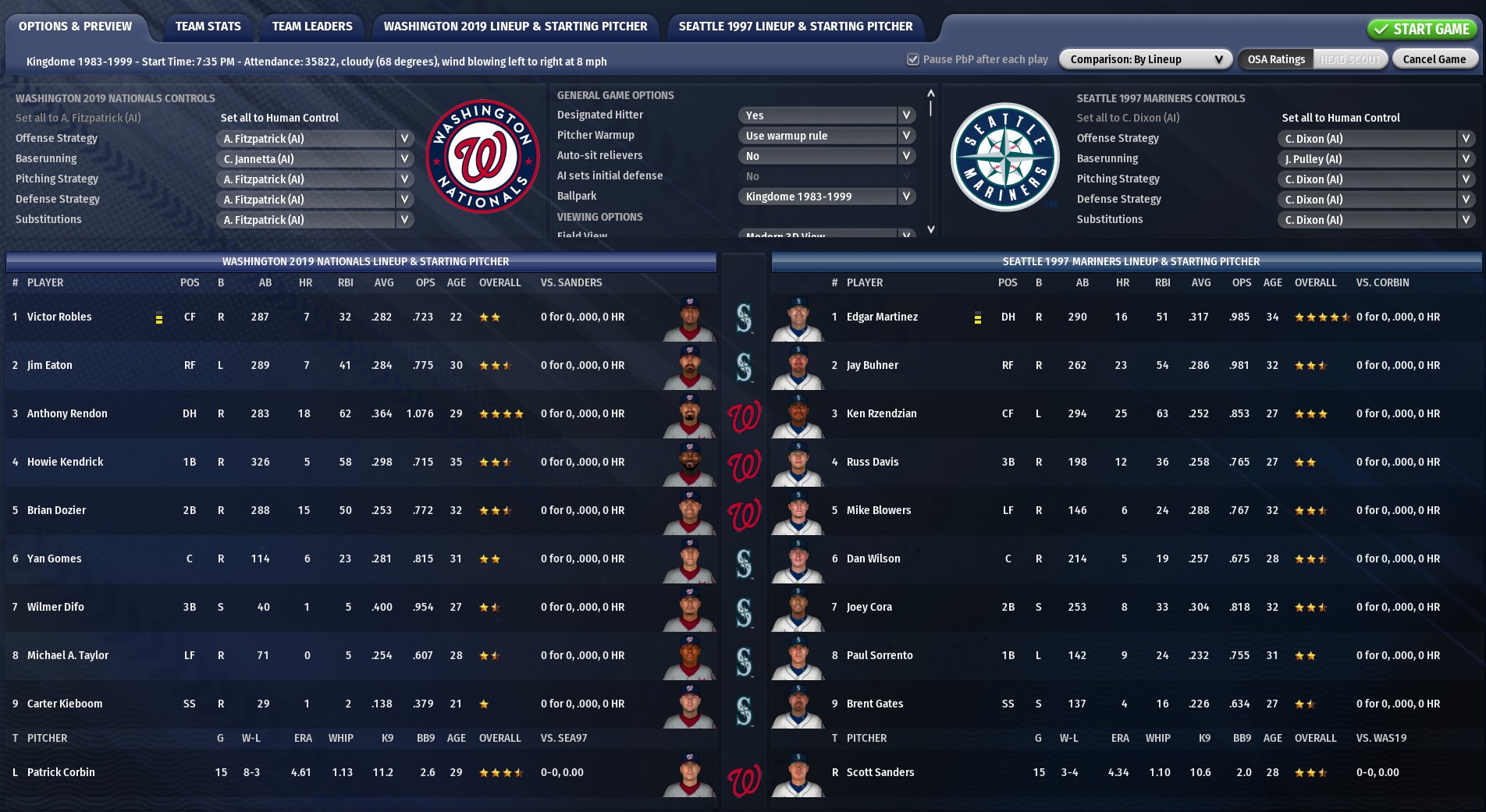 Creator's Cup Match Day 79: 19 Nationals (45-33) at 97 Mariners