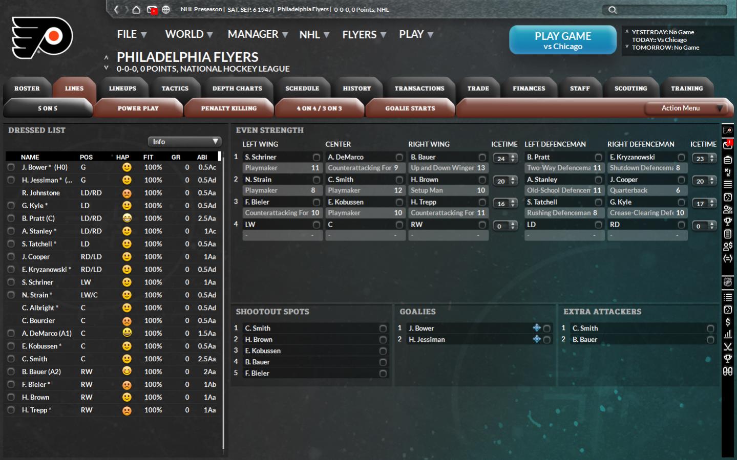 These are the Flyers lines as they prepare for the first game in franchise history, a preseason game against the Chicago Black Hawks.