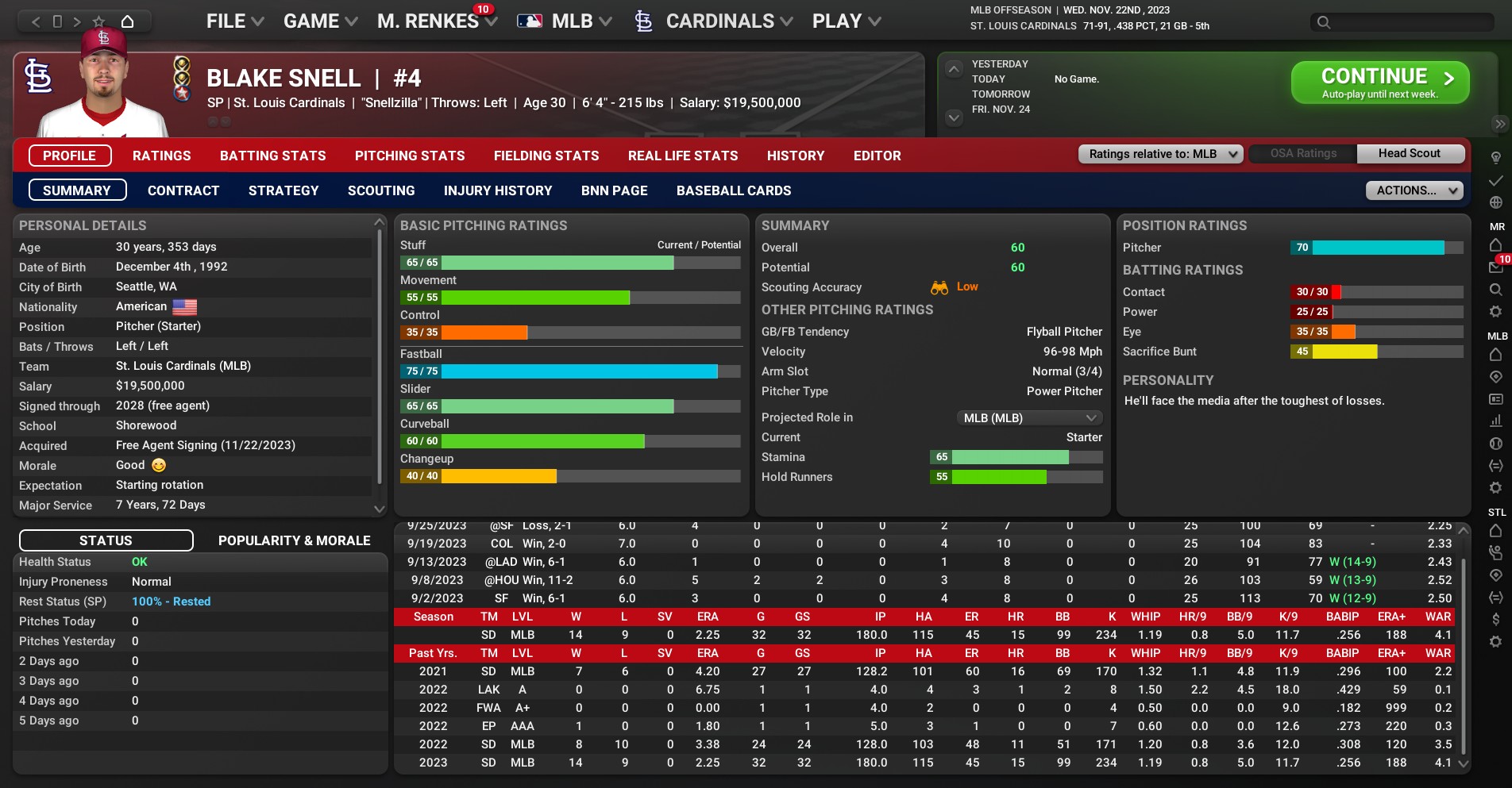 Gore, a former No. 3 overall pick in the 2017 draft by the San Diego Padres, made 27 starts for the Nationals in 2023 going 7-10 with a 4.42 ERA. The 24-year-old also pitched in 16 games/13 starts for San Diego in 2023, going 4-4 with a 4.50 ERA. Washington acquired Gore from San Diego in the offseason in a deal featuring Juan Soto. The 2023 National League Player of the Year, Baker hit .334 with 33 home run and 98 RBIs for Memphis in 2023. The 26-year-old also got into 33 games/23 starts with St. Louis, but hit only .209 with two home runs and 10 RBIs. A well-regarded defender, the Cardinals claimed Siani off waivers from the Cincinnati Reds in August of 2023. He spent time at both Memphis -- playing 10 games and hitting .226 with one RBI -- and with the Cardinals -- five games with no hits in five at bats. Acquired via trade from the Cubs on July 31, the 21-year-old Made split time between High-A South Beloit (Cubs) and High-A Wilmington (Nationals). In 92 games/91 starts, he hit just .217 with three homers and 30 RBIs. Last edited by rink23; 01-07-2024 at 02:56 AM. |
