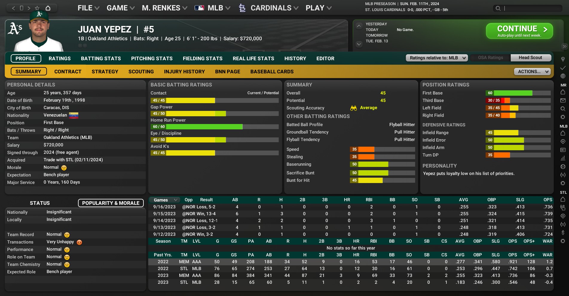 Cards news: February 11 -- IB/OF Yepez and C Knizner go to Oakland for OF Esteury Ruiz